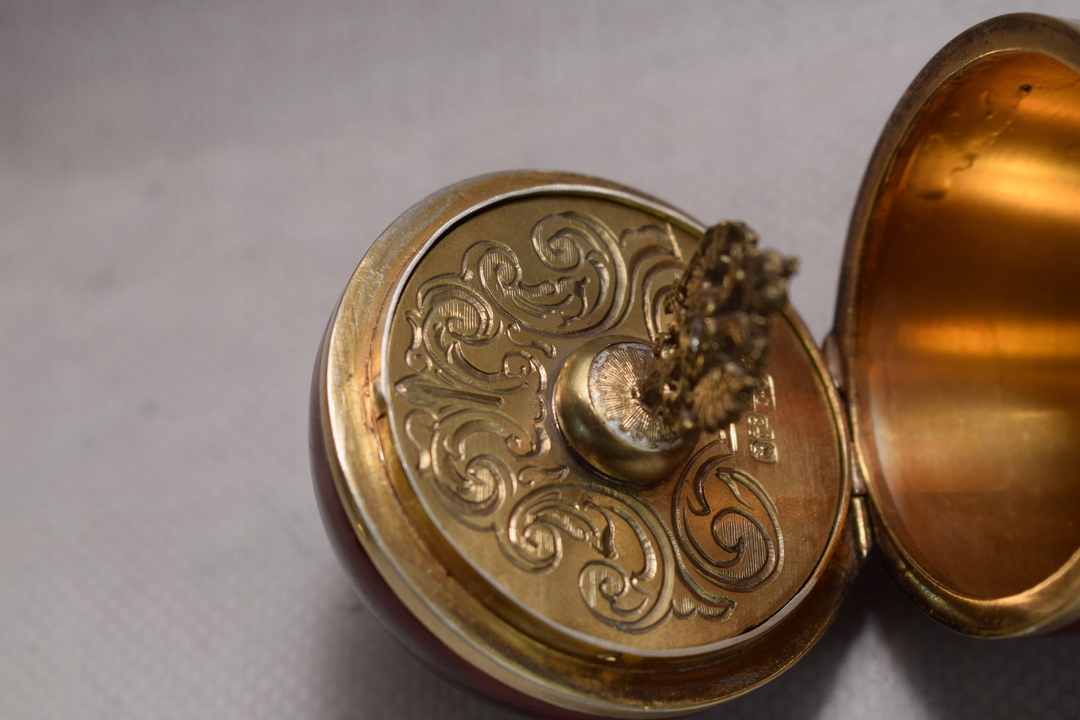 Это позолоченное серебряное яйцо идеально подойдет коллекционерам старинного серебра, любителям русской истории или всем, кто ищет необыкновенный предмет, олицетворяющий великолепие и мастерство царской России.