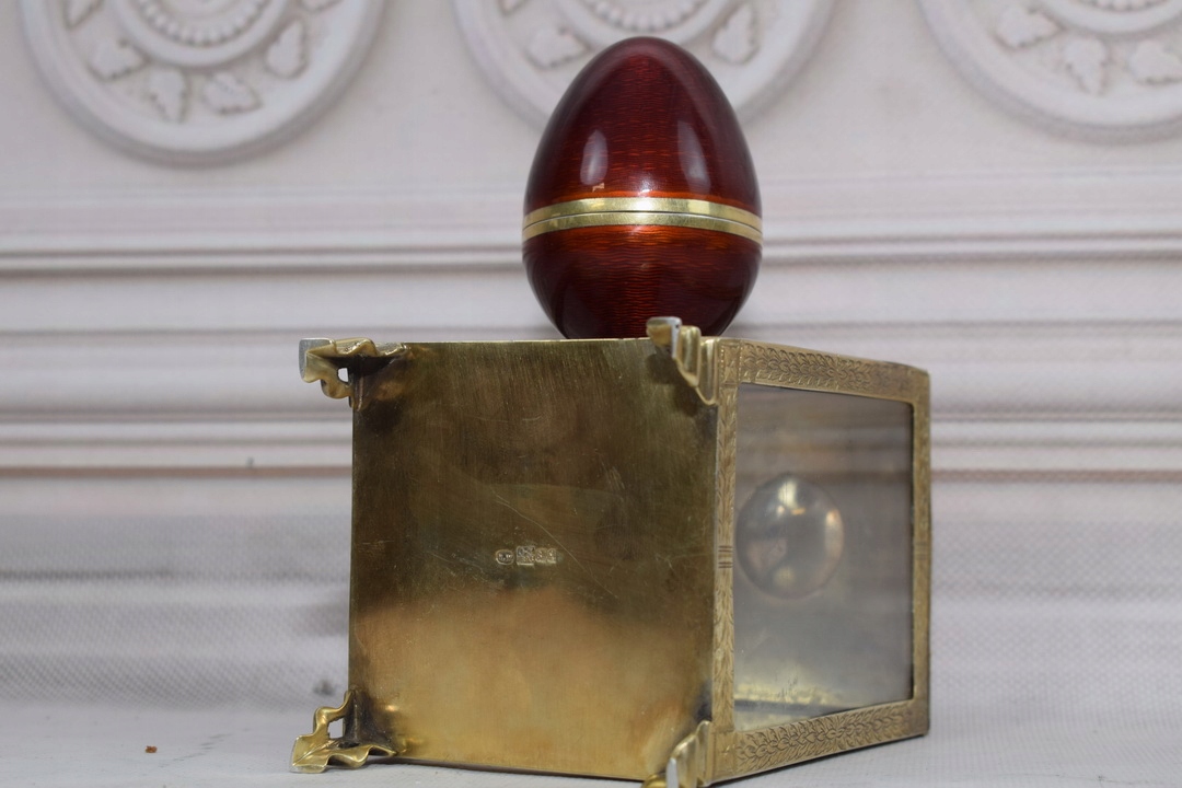 Серебряное яйцо Царской России - 470 грамм эмалированного позолоченного серебра Россия 84 - Царское серебряное яйцо - Яйцо в стеклянном серебряном футляре 84.