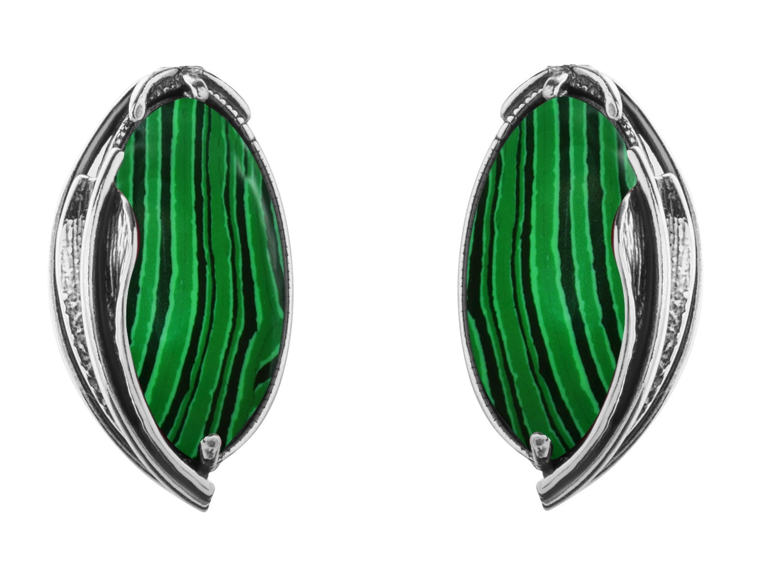СРІБНІ ЕЛЕГАНТНІ ЗАЖИМКИ З МАЛАХІТАМИ І ЛИСТЯМ
