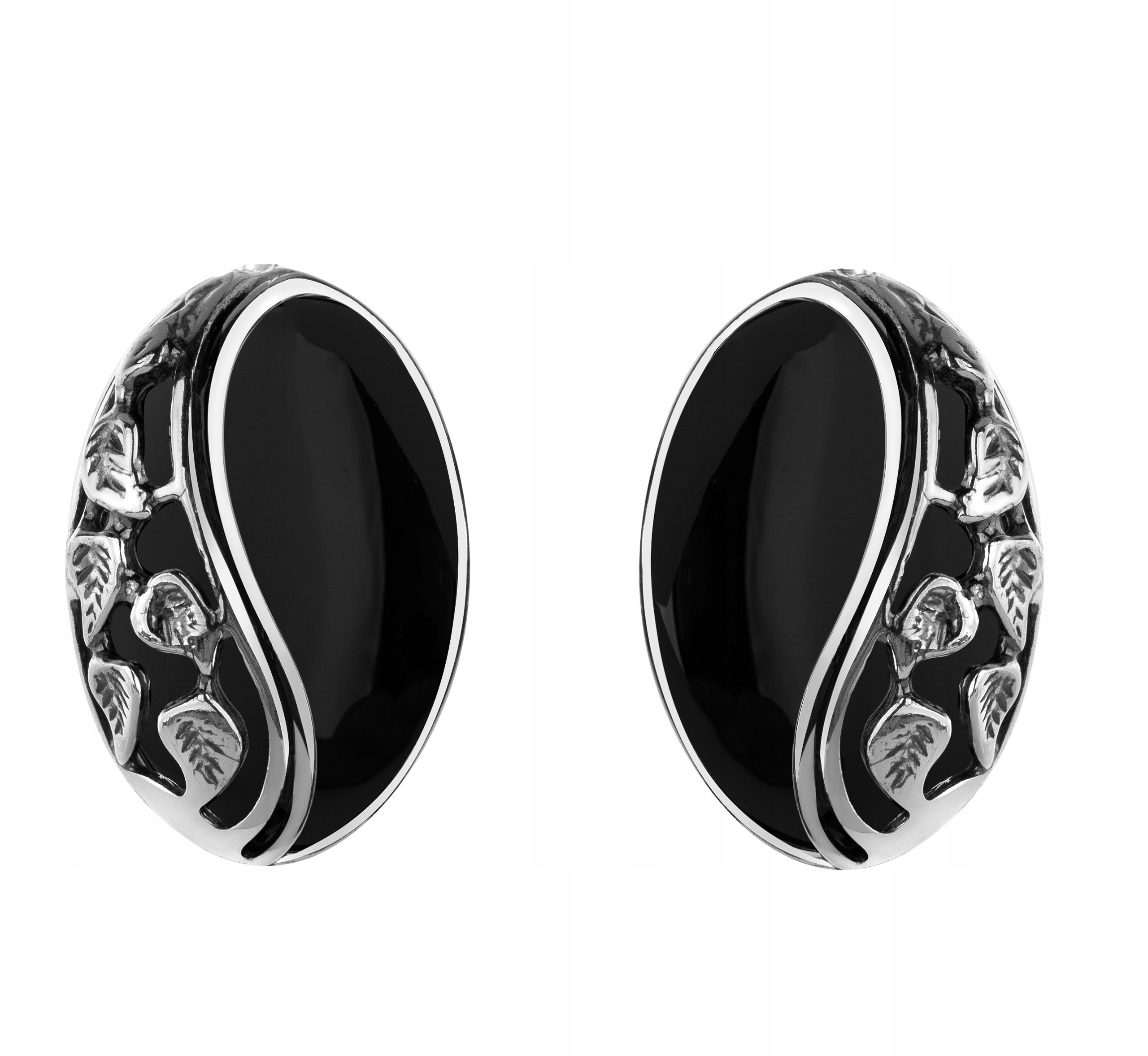 Серебряные зажимы с Onyxes, украшенные серебряными листьями 925