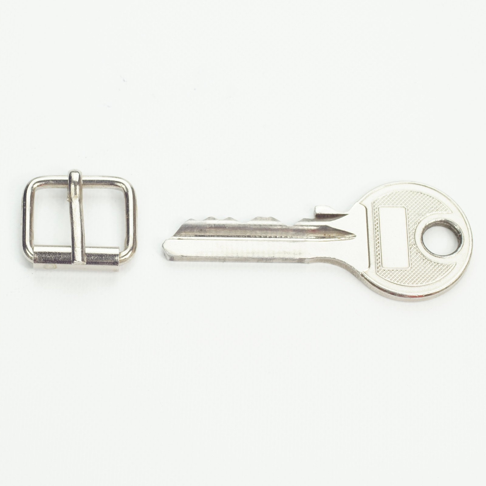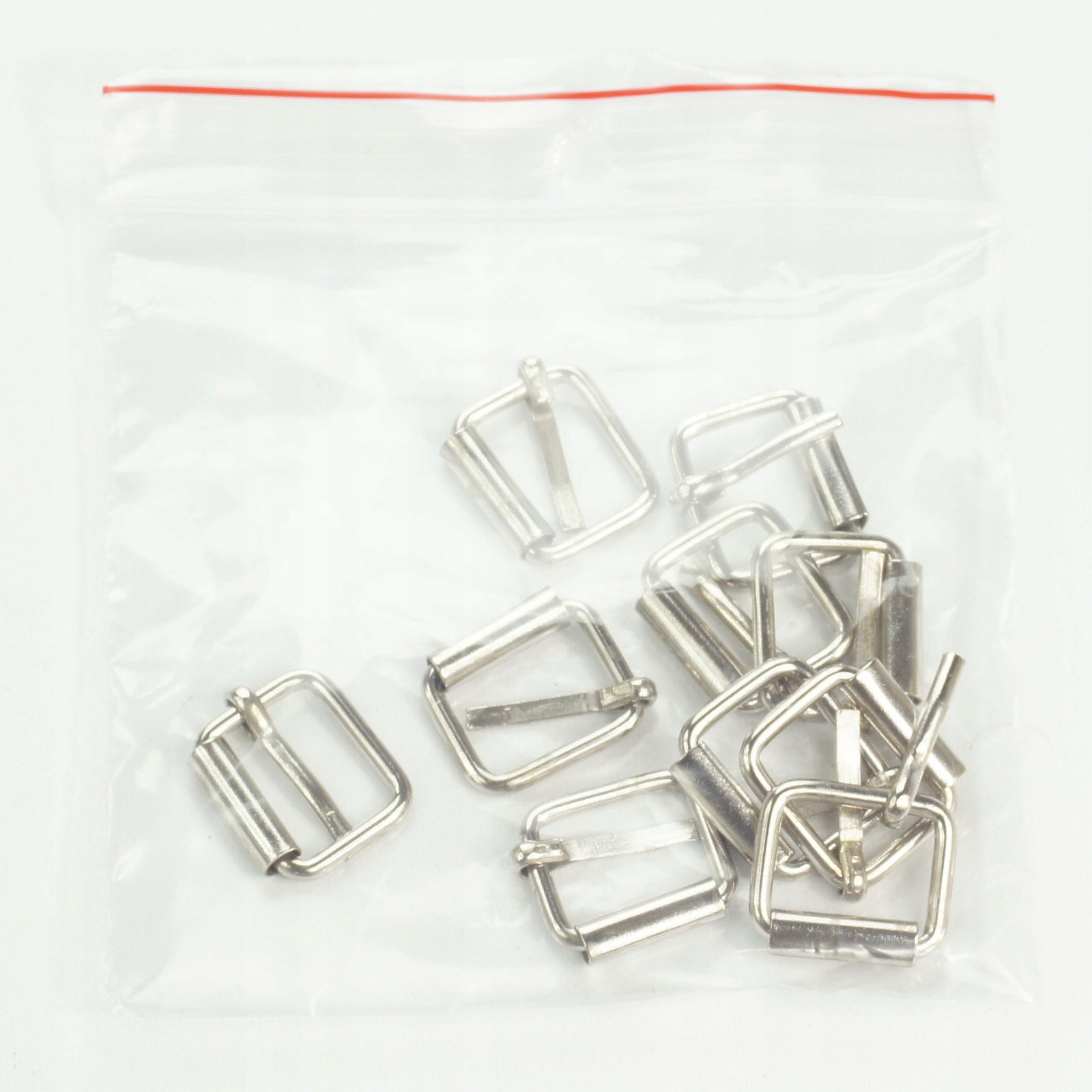 Пряжка изготовлена из стальной проволоки, никелированной серебристого цвета. Внутренние размеры пряжки 16 мм х 12 мм, толщина проволоки 2,0 мм.