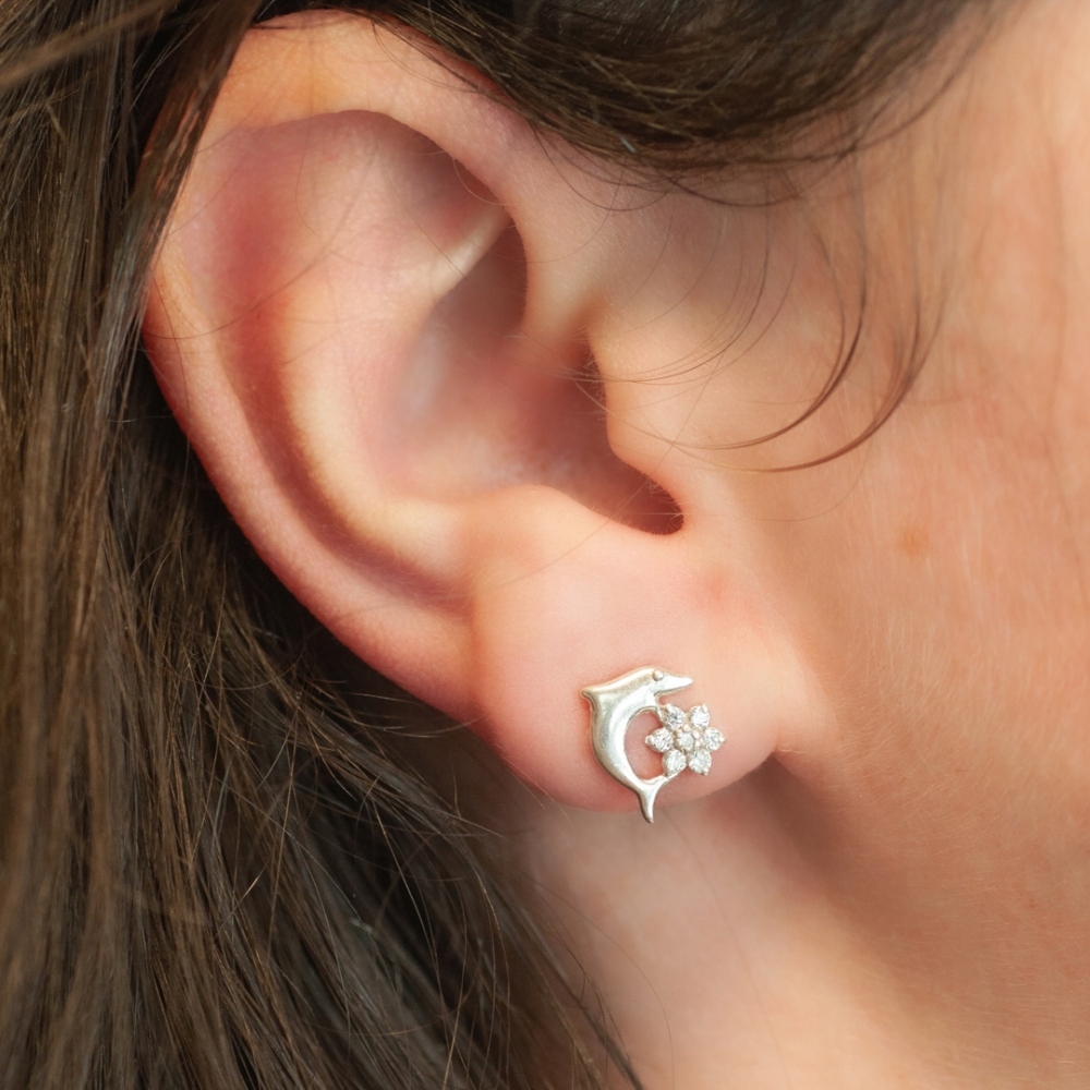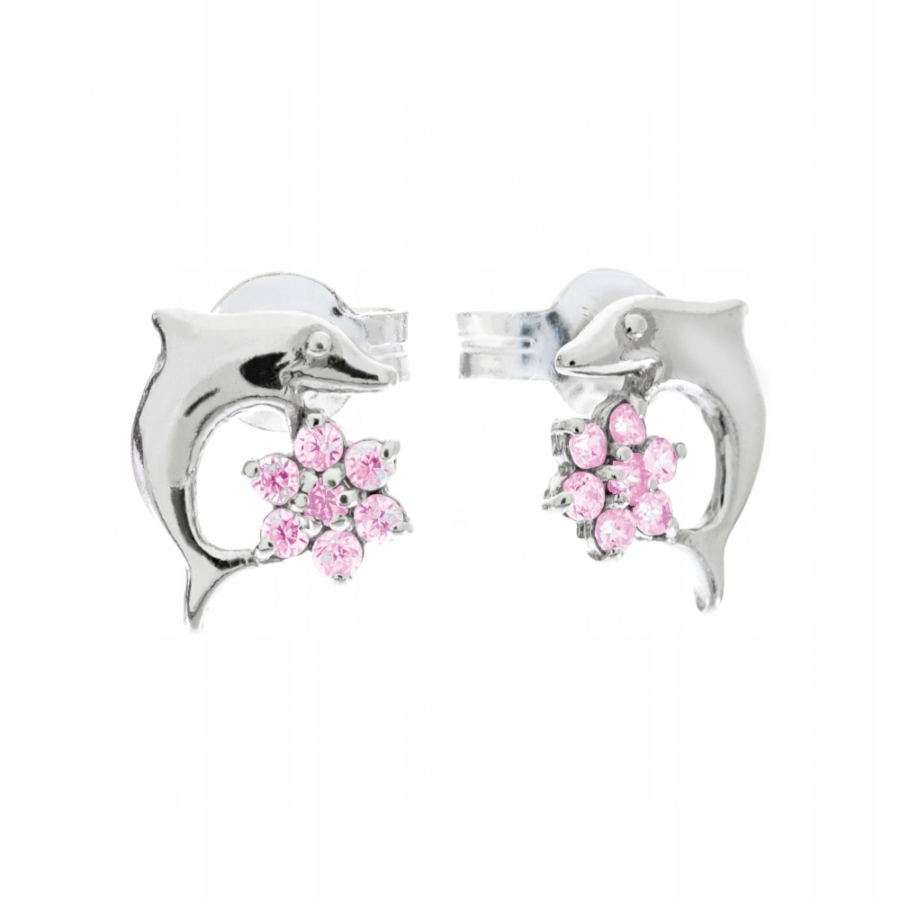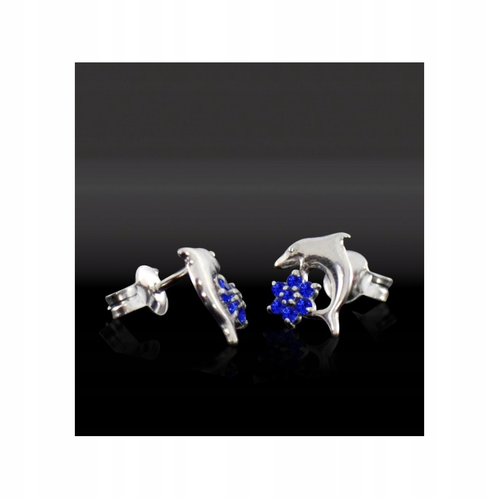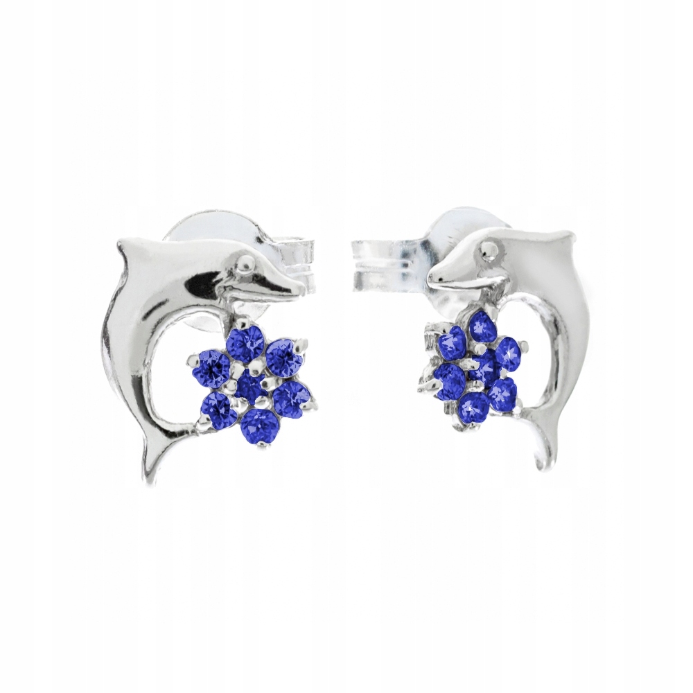Нежные, очаровательные серьги в виде дельфинов. Изготовлен полностью из серебра 925 пробы. Украшен яркими, круглыми, красиво мерцающими камнями, образующими цветок. Застегивается на очень удобную застежку, представляющую собой шпильку с барашком.