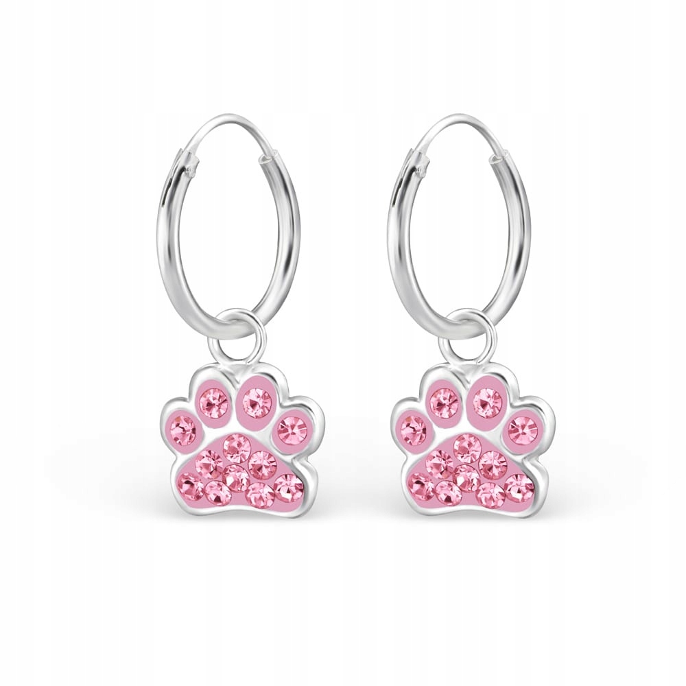 Милые серебряные серьги с лапкой для девочки. Серебро 925. Розовые серьги, украшенные кристаллами. Вес 0,75 г, размер лапы 9 мм х 9 мм, размер колеса 12 мм х 12 мм, количество камней 24 шт.