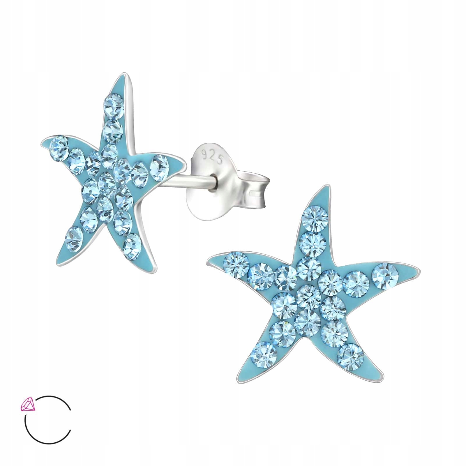 Милые серебряные серьги в виде морской звезды для девочки. Серебро 925. Синяя морская звезда, украшенная кристаллами. Вес 0,65 г, размер 12 мм х 12 мм, количество камней 34.