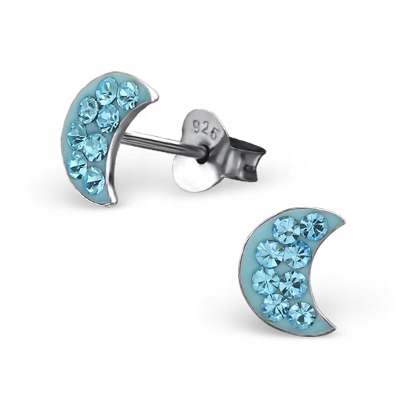 Милые серебряные серьги в форме луны для девочки. Серебро 925 пробы Голубая луна, украшенное кристаллами. Вес 0,55 г, размер 5 мм х 7 мм, количество камней 16 шт.