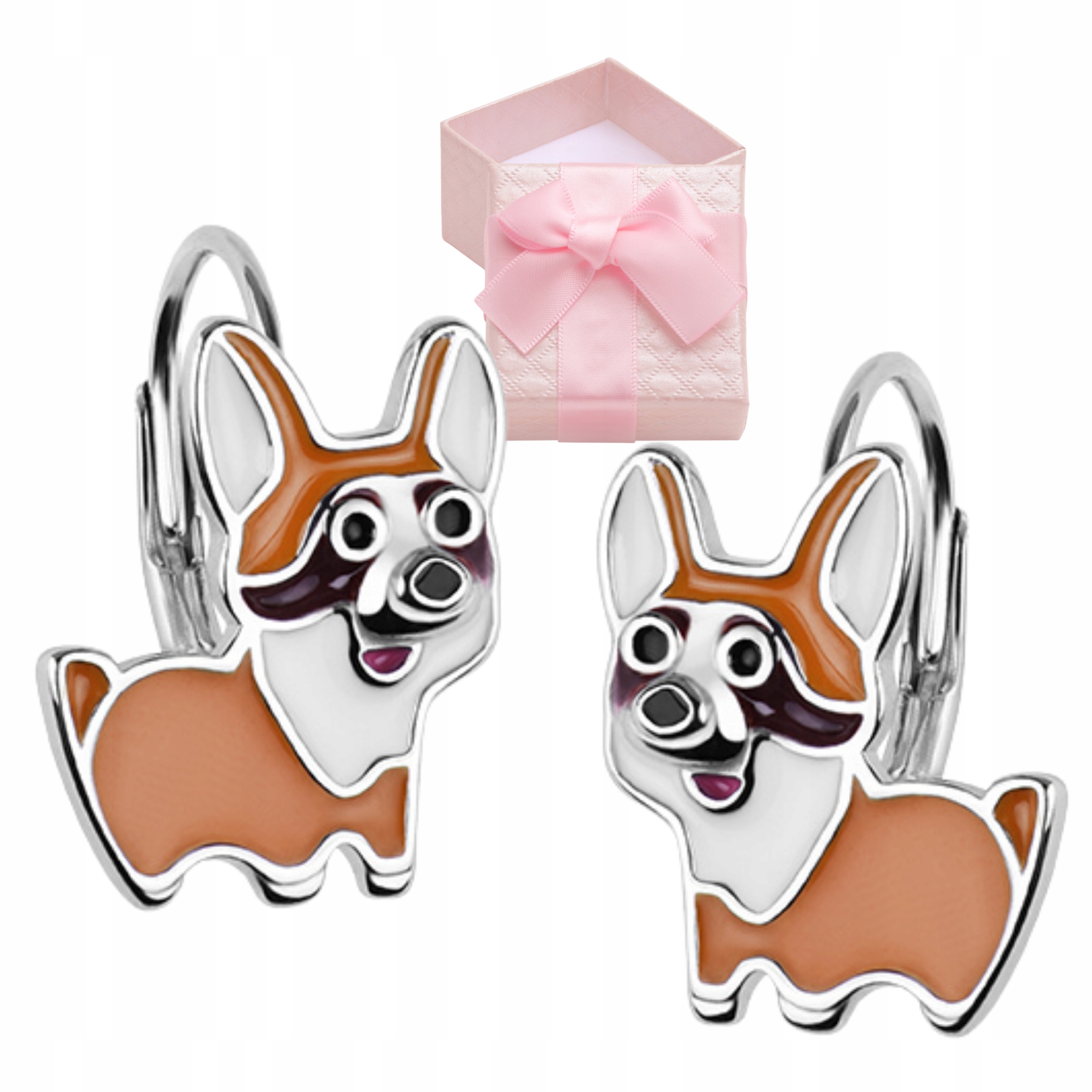 Серебряные серьги для девочки собака Corgie Royal English Dog