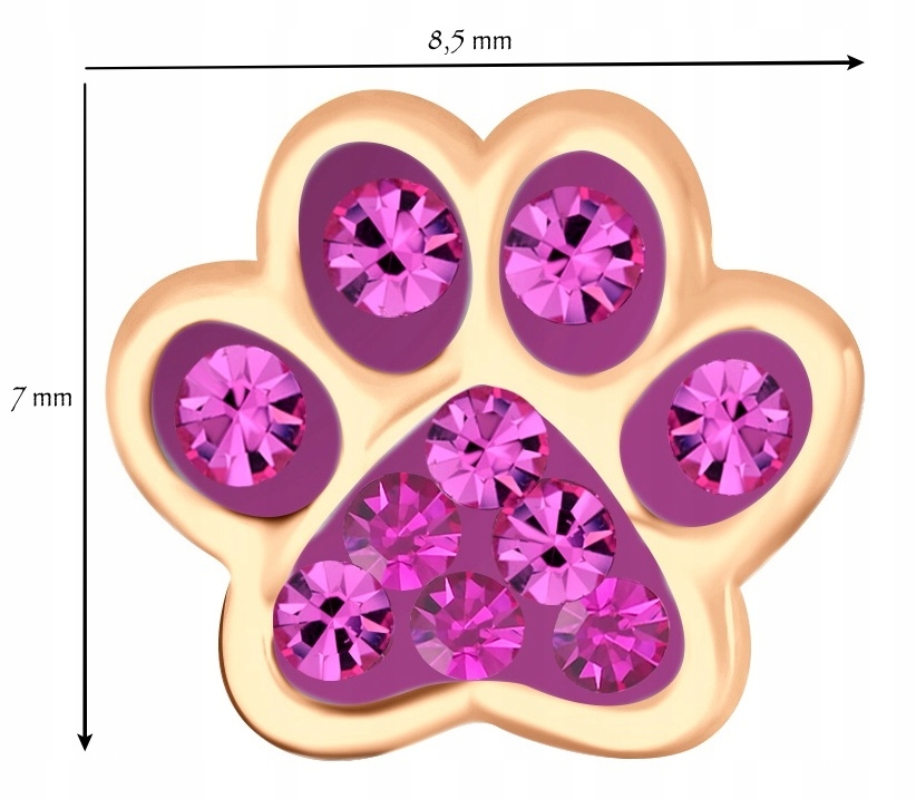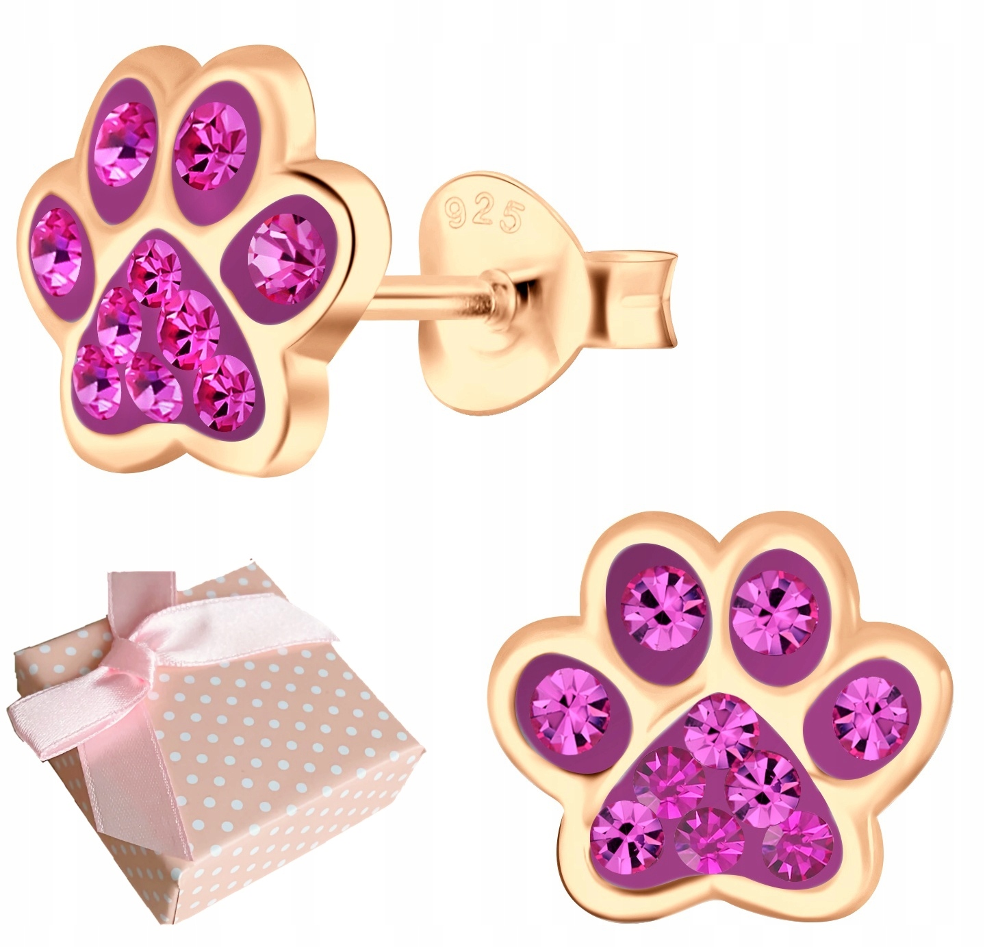 ✅ Красивые серебряные серьги позолоченные в форме лапки для девочки. Серебро 925 пробы, позолота 14К..Розовая лапка, украшенная розовыми кристаллами.