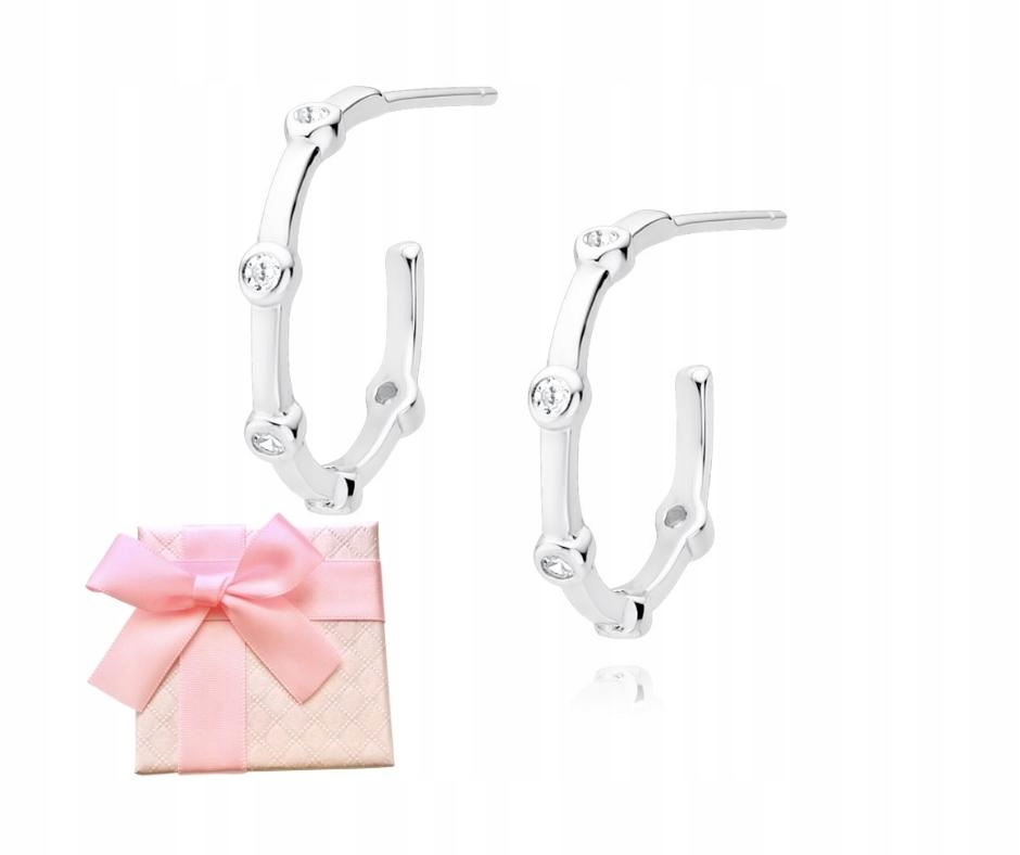 СЕРЕБРЯНЫЕ СЕРЬГИ-КОЛЬЦА С ЦИРКОНИЯМИ В ПОДАРОК, ПОЛУКРУГИ