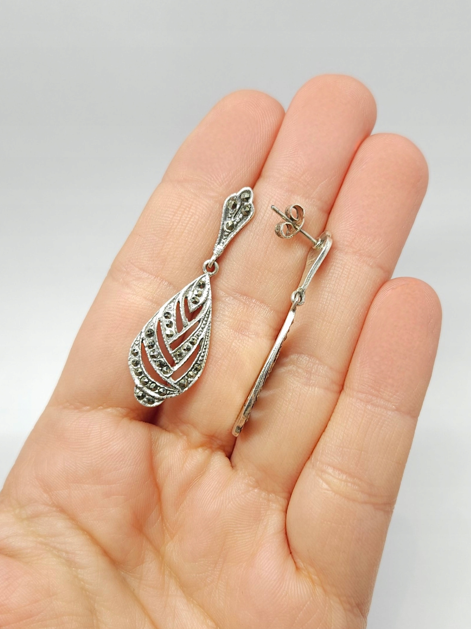 Серебряные серьги с марказитами, серебро 0.925, подвеска, шпильки