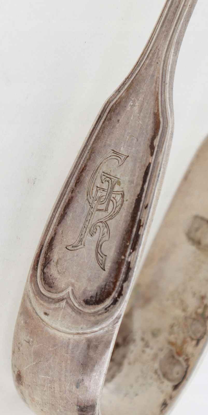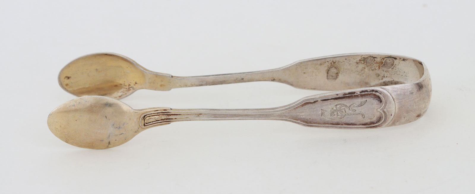 Щипцы для сахараиз серебра 800 пробы. На щипцах выгравирована монограмма GR.