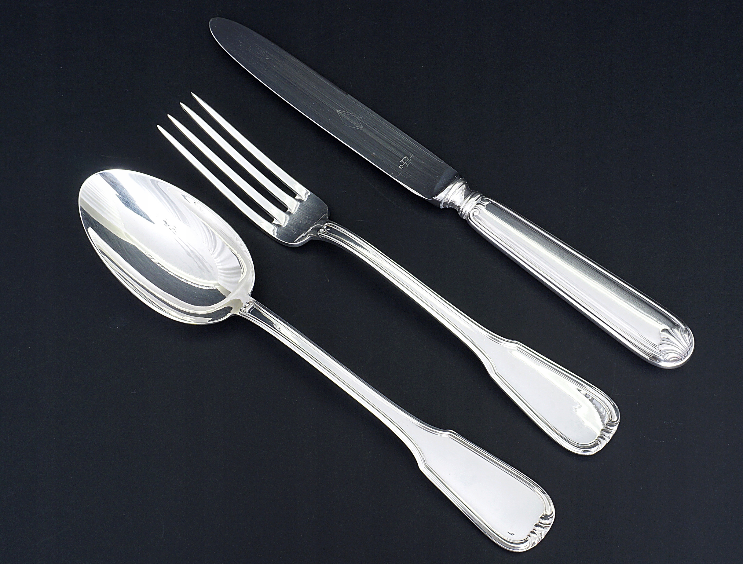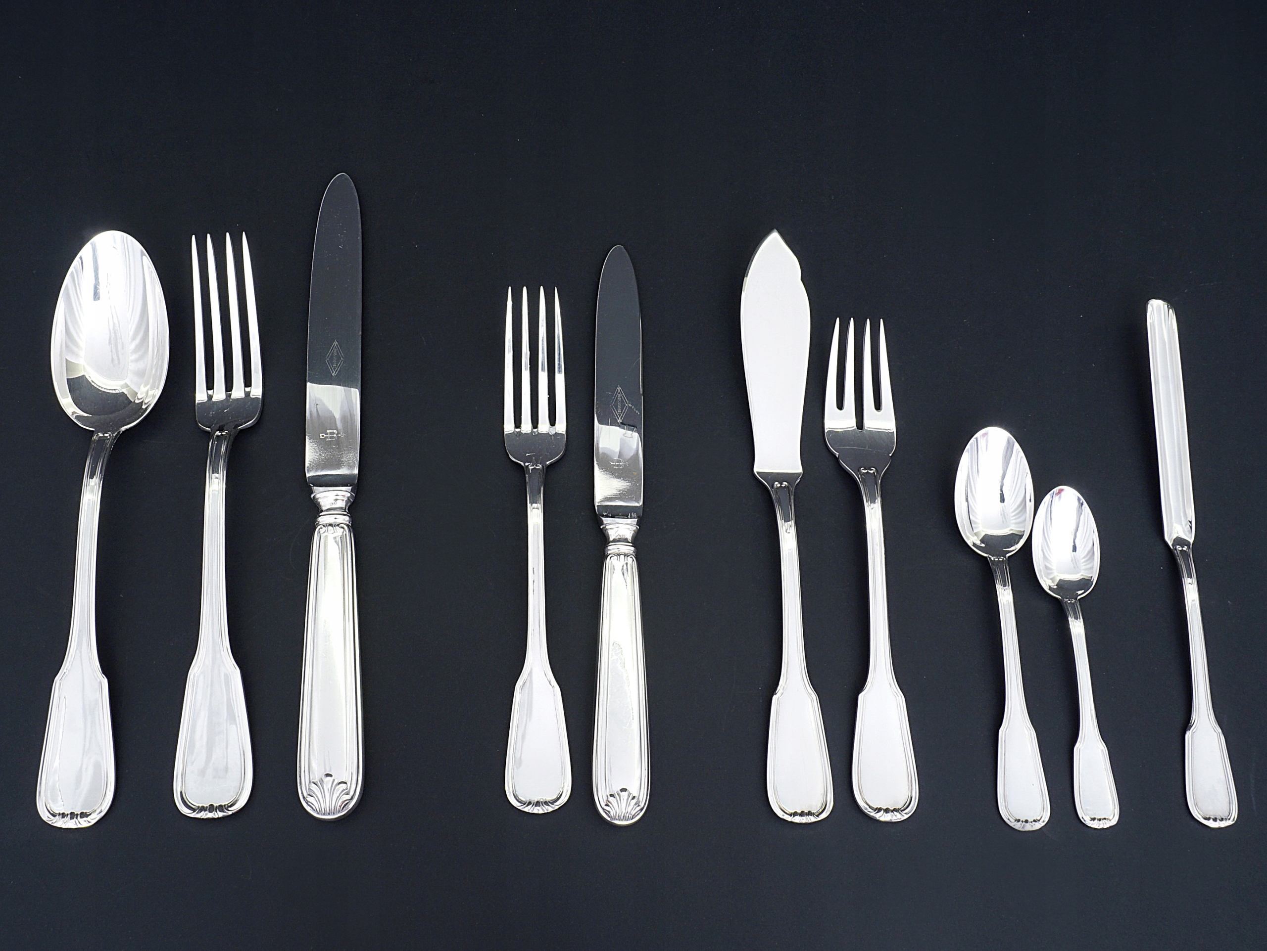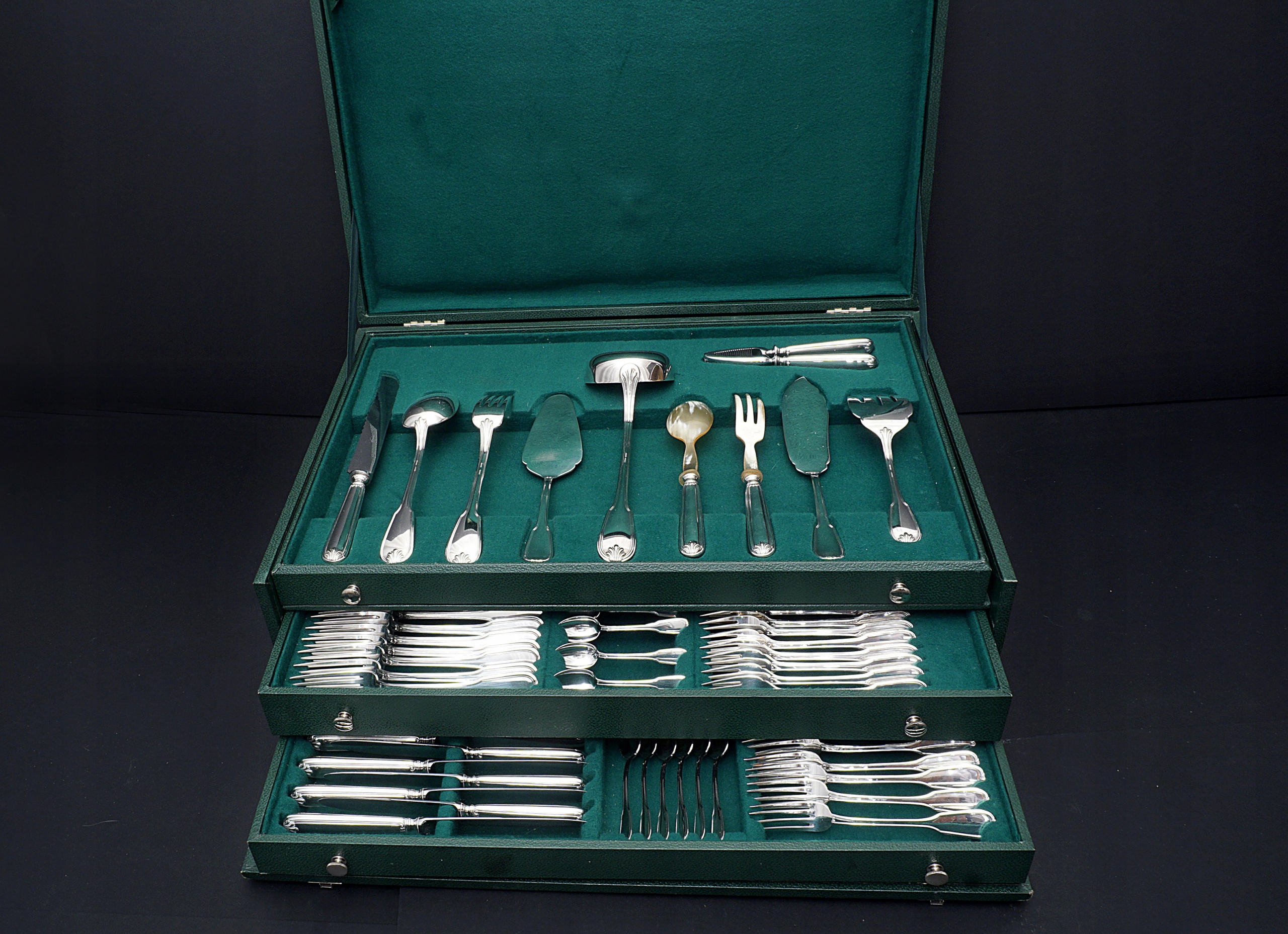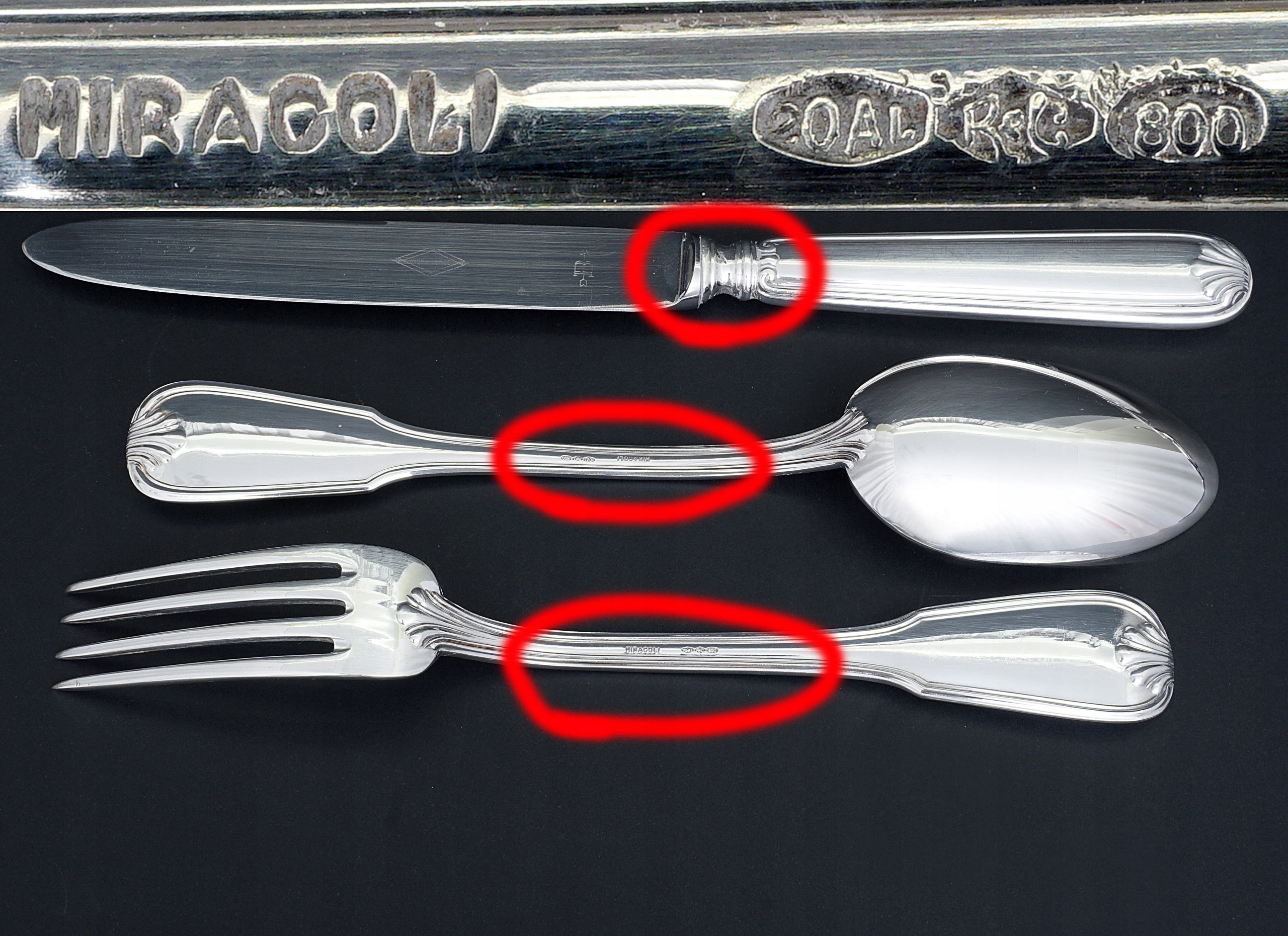 12 -Отправленный набор столовых приборов из 800 образцов серебра.