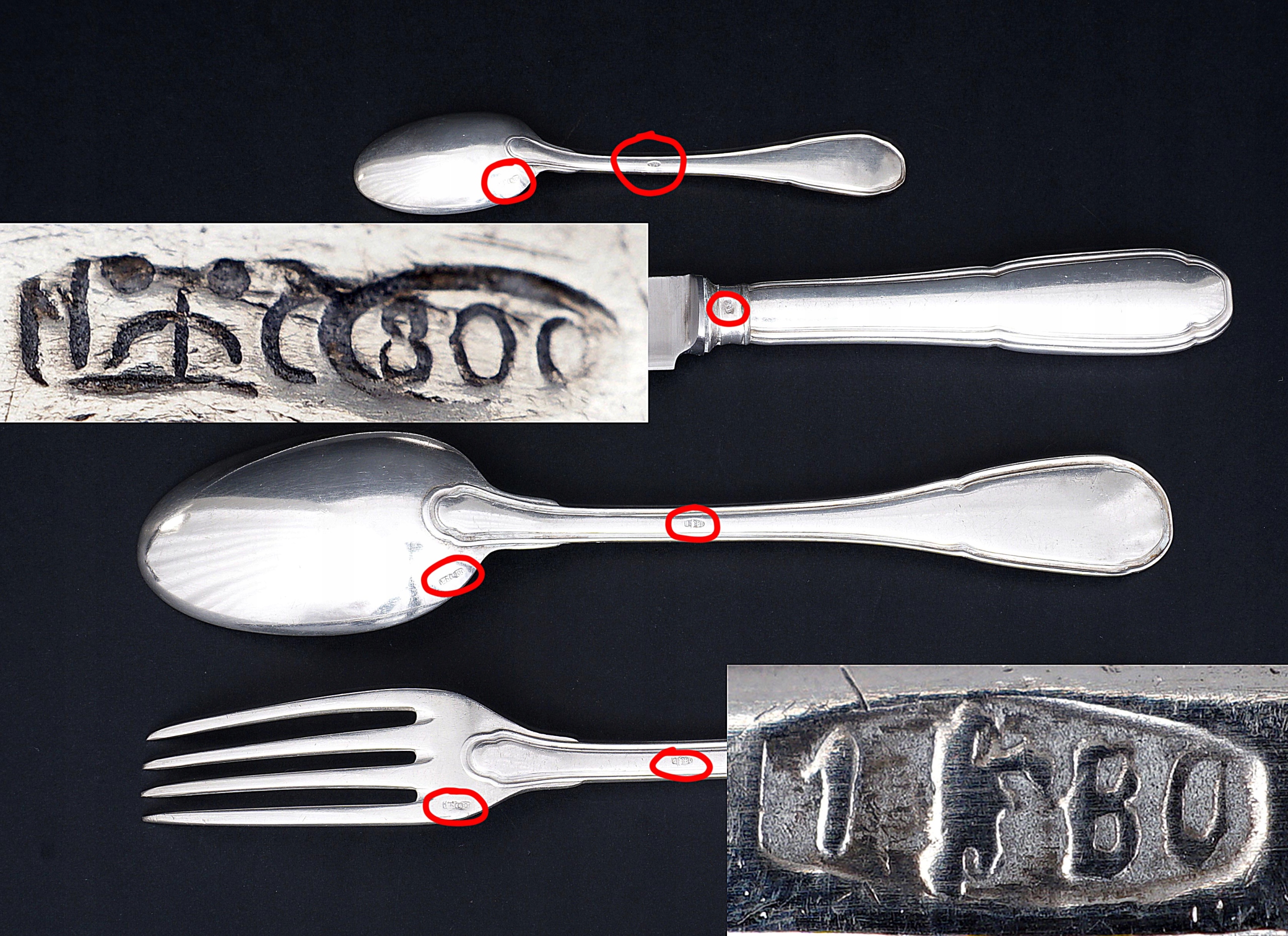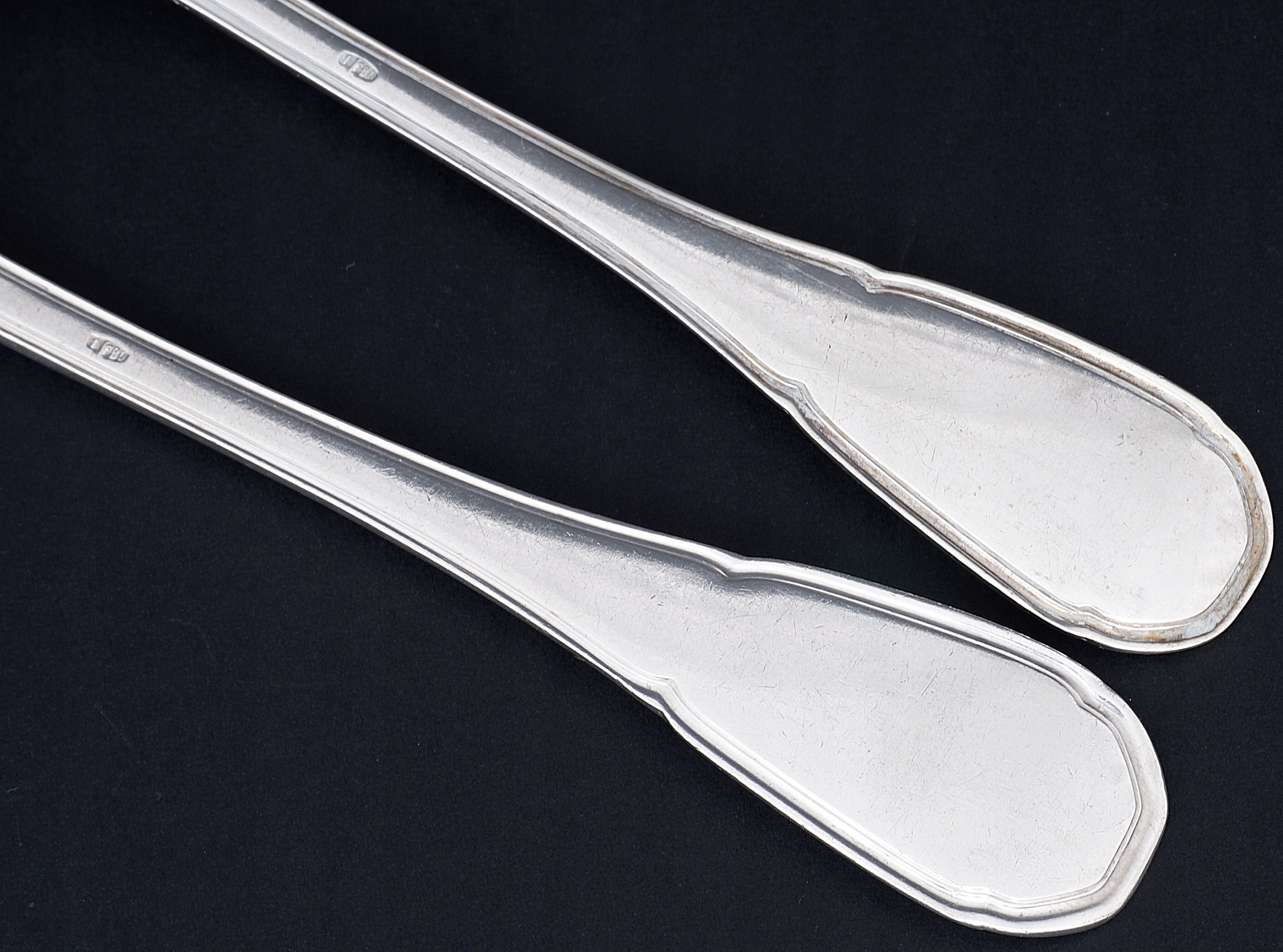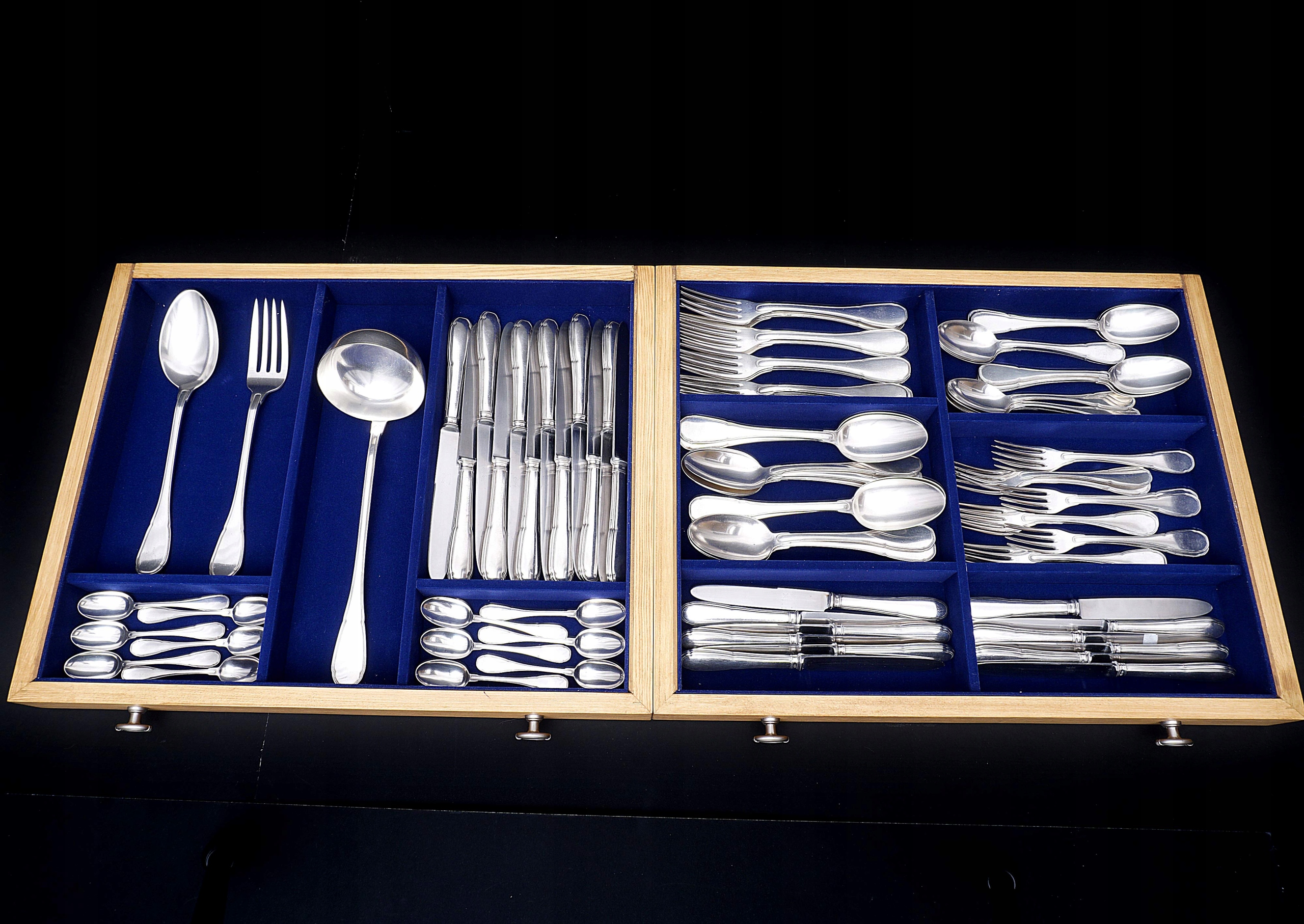Набор столовых приборов на 12 персон из серебра 800 пробы.
