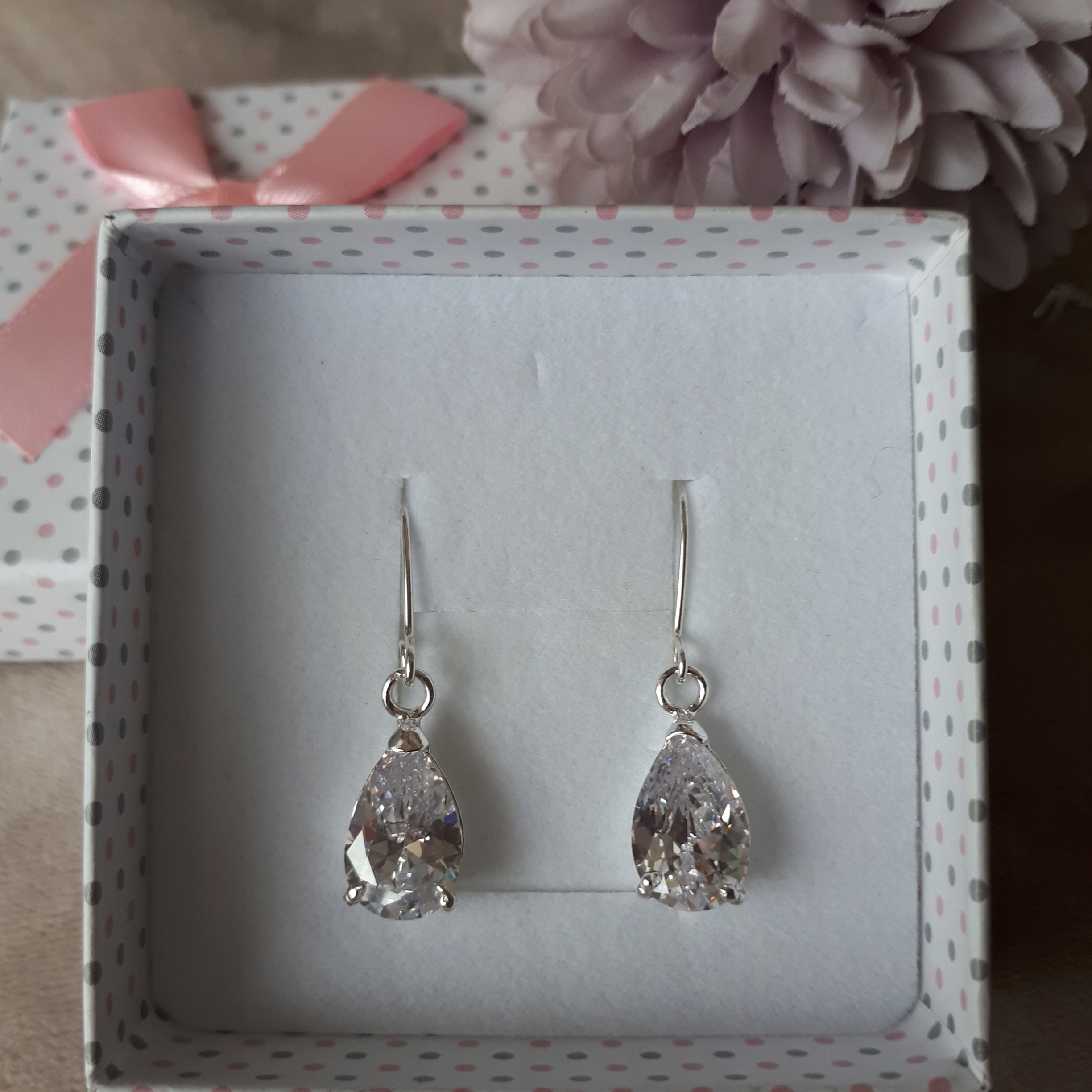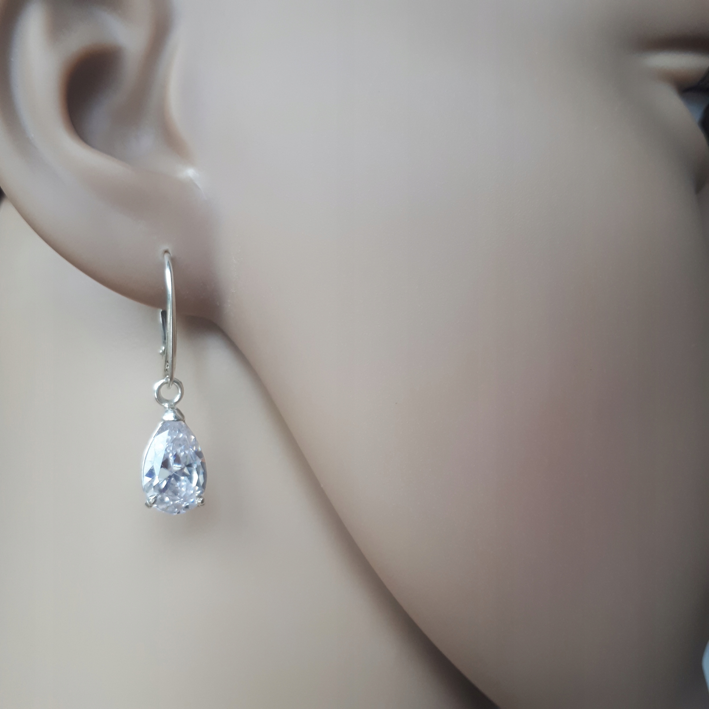 Предмет предложения - элегантные серебряные серьги с цирконами каплевидной формы.