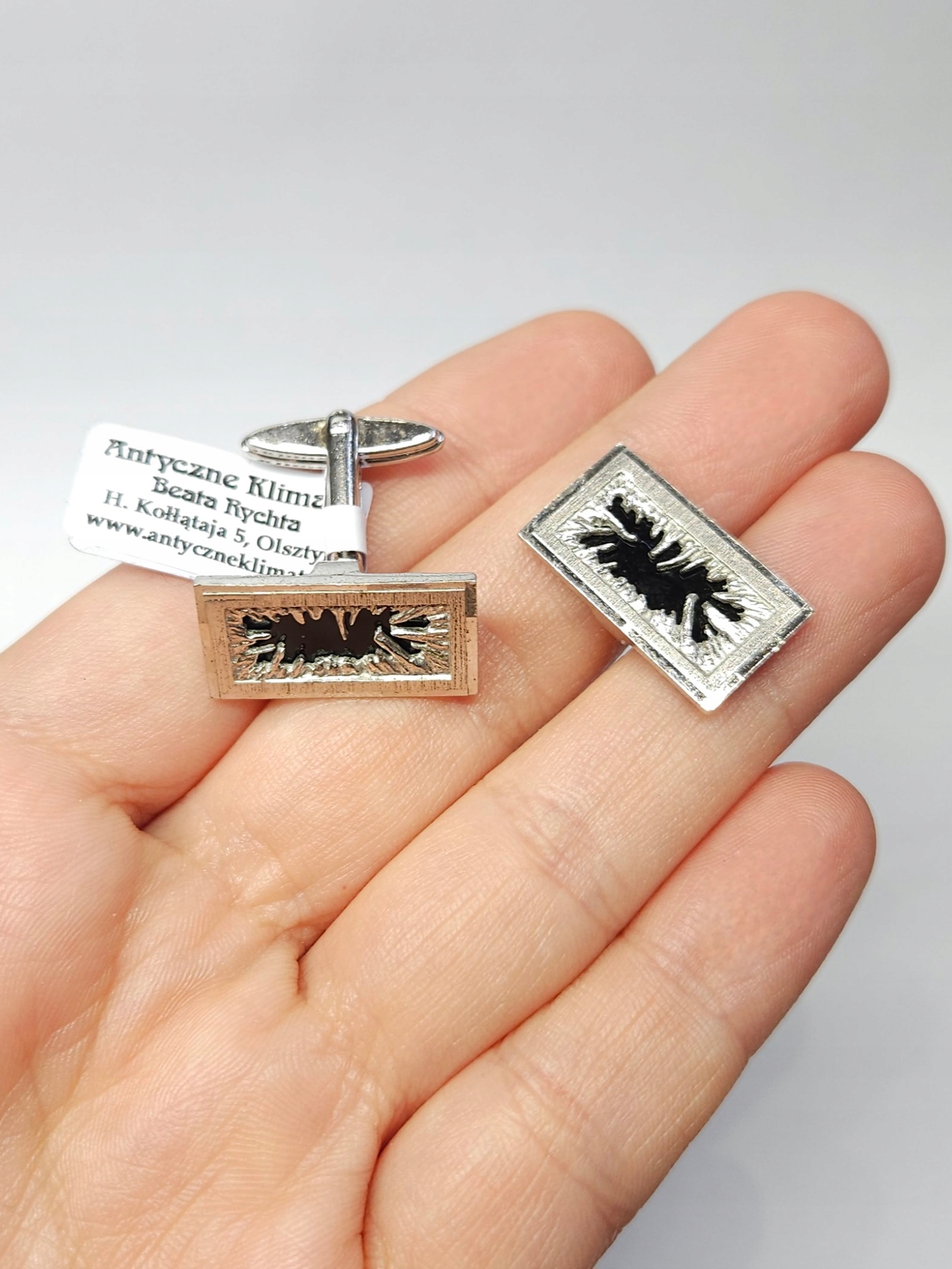 Серебряные запонки с ониксами, родиевое серебро 0.835