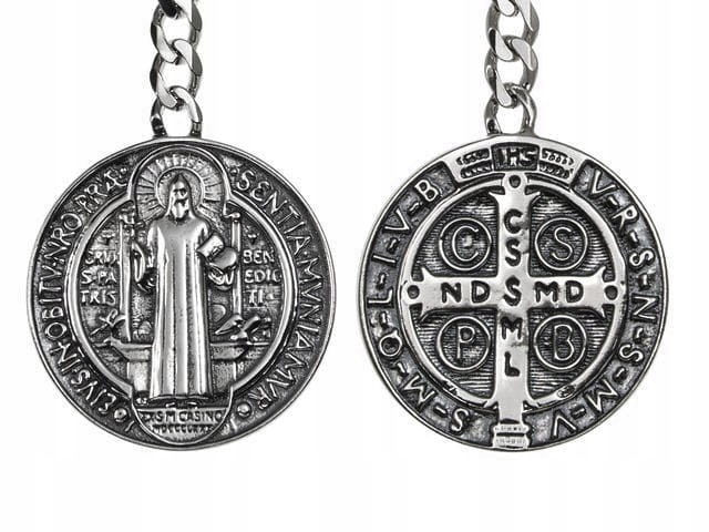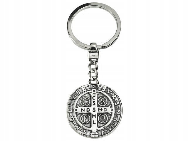Серебряный брелок со Святым Бенедиктом + Коробка