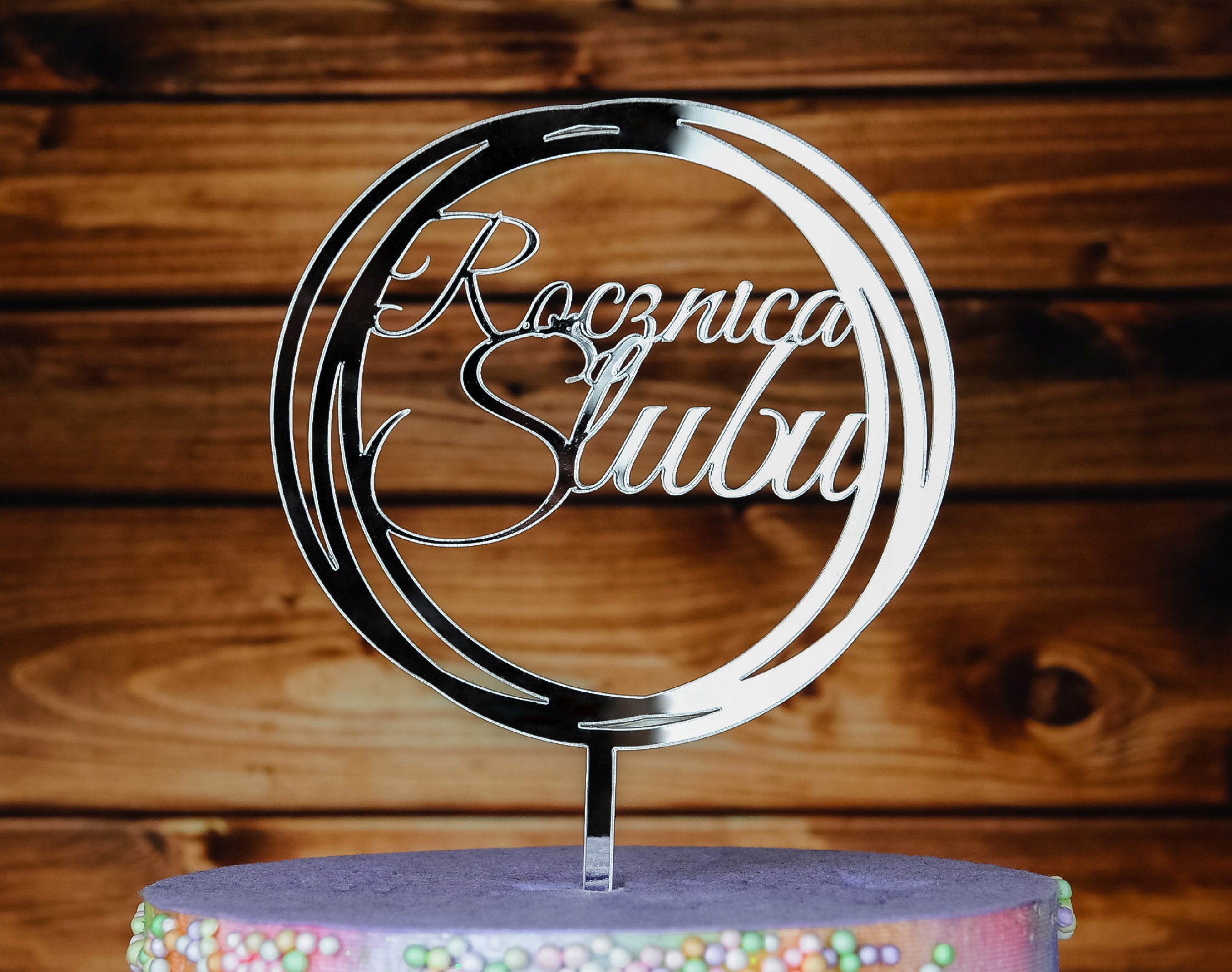 Срібний дзеркальний топпер на річницю весілля ТУС-45