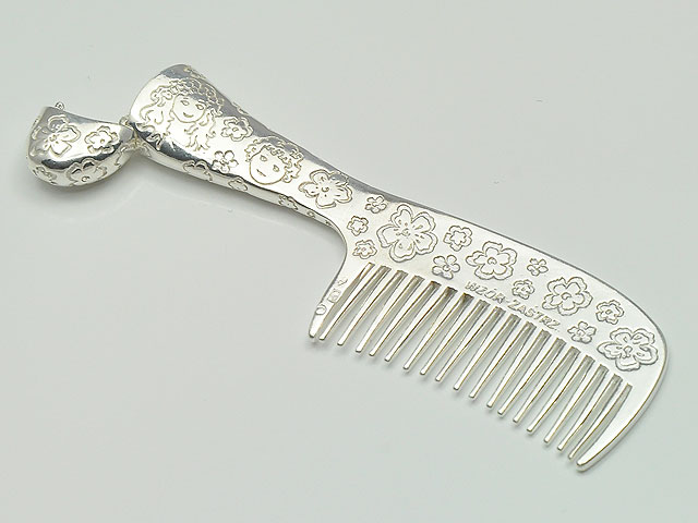 Серебряный сувенир-расческа на крещение с лазерной гравировкой