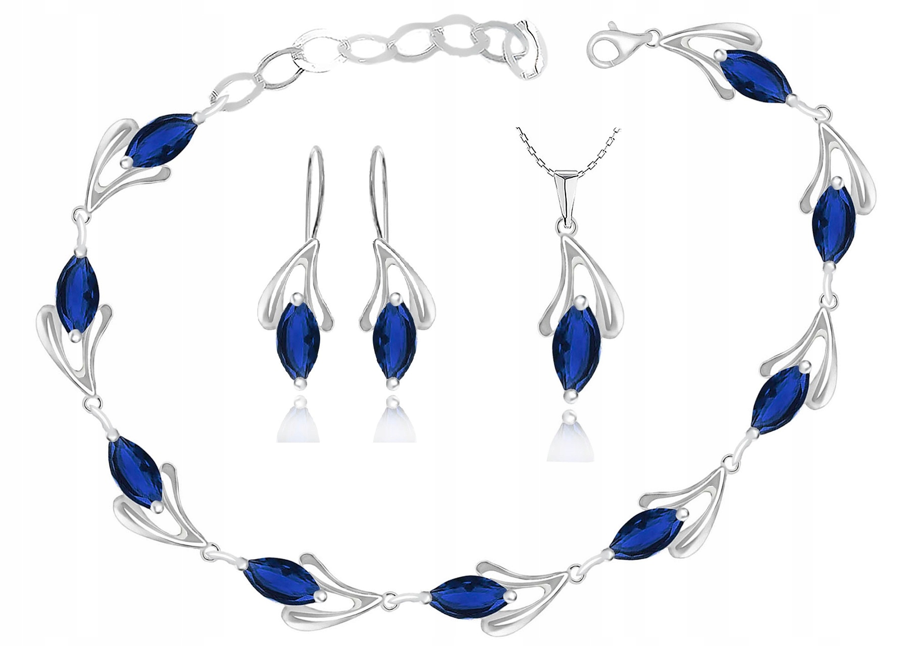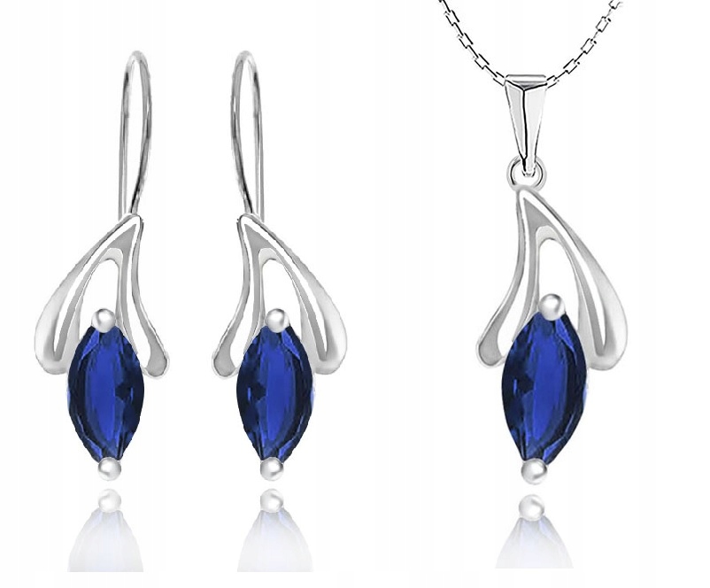 Предмет предложения - красивый комплект серебряных украшений-капельек с сапфирами и цирконами -