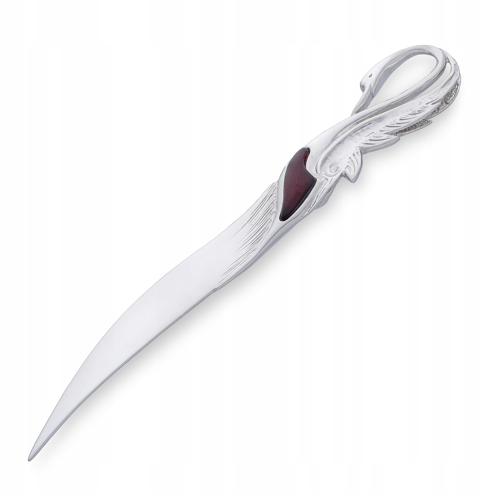 Серебряный нож-конверт Лебедь с янтарем