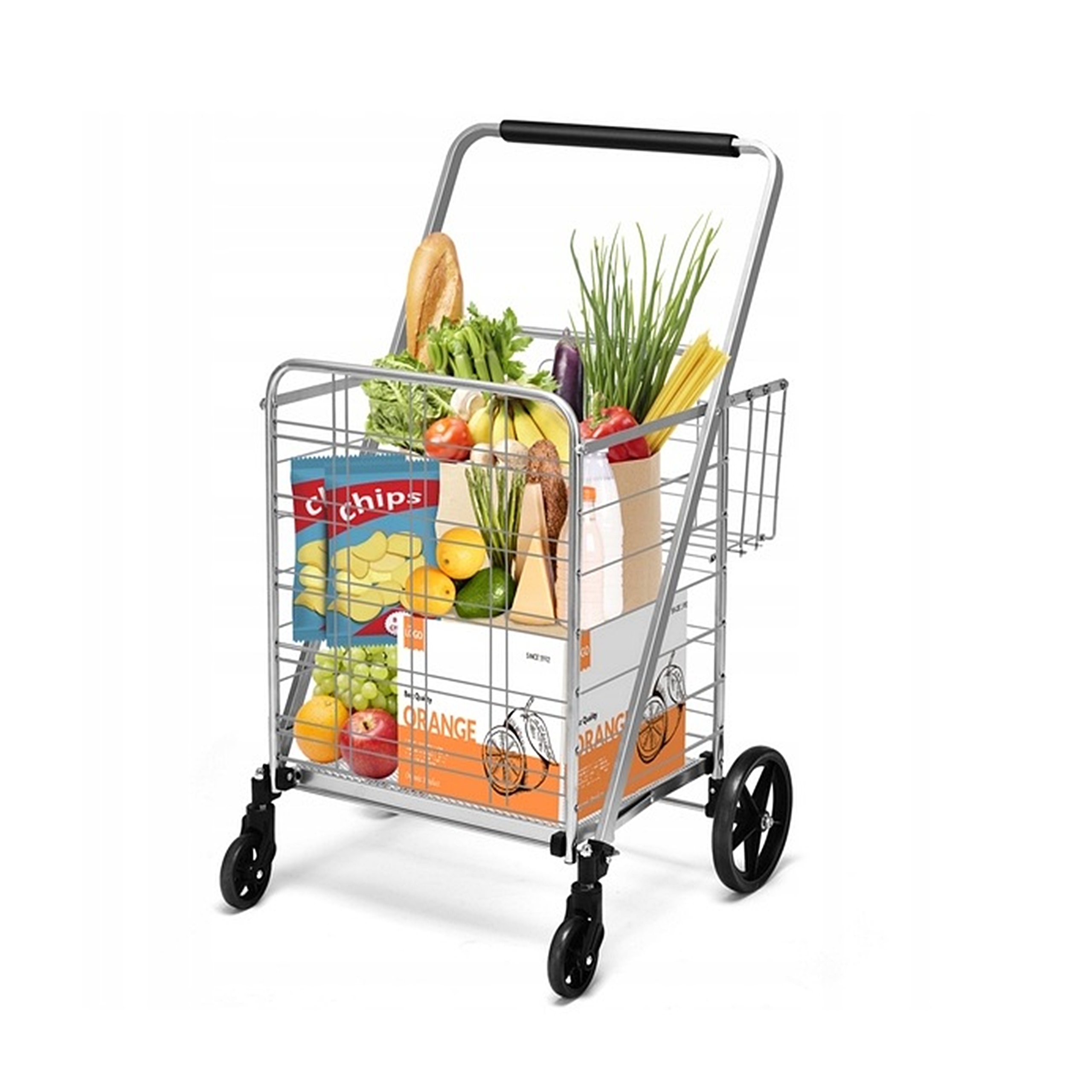 Вы устали нести несколько тяжелых сумок для покупок по дороге домой? В следующий раз возьмите с собой складную тележку для покупок! Это действительно экономичная конструкция, которая хорошо держит форму и плавно катится. Вы можете взяться за ручку и сдвинуть ее, чтобы легко переносить продукты.