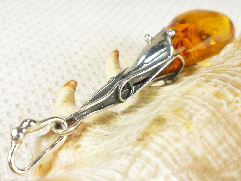 Серебряный кулон с янтарным, ручной работы 620-903