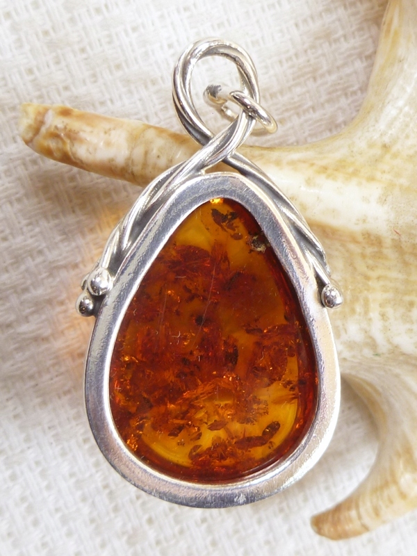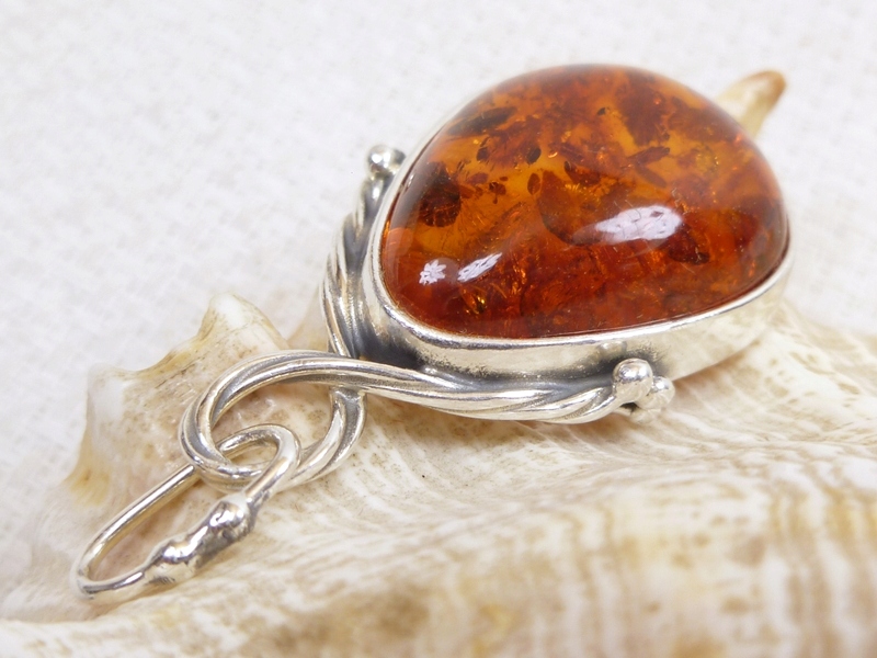 Серебряный кулон с янтарным янтарным 607-9