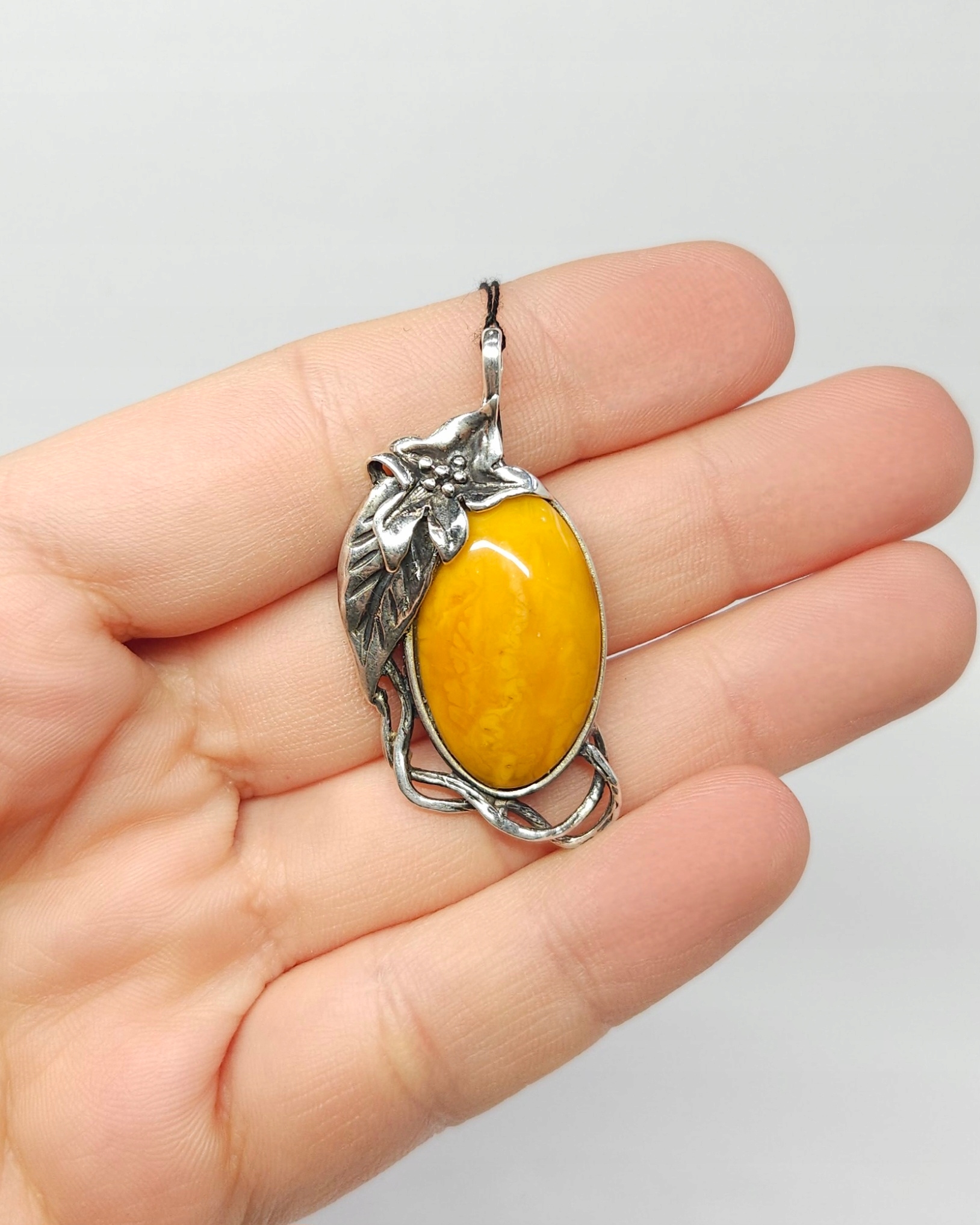 Серебряный кулон с медовой имитацией янтарь, серебряный пиар. 0,925
