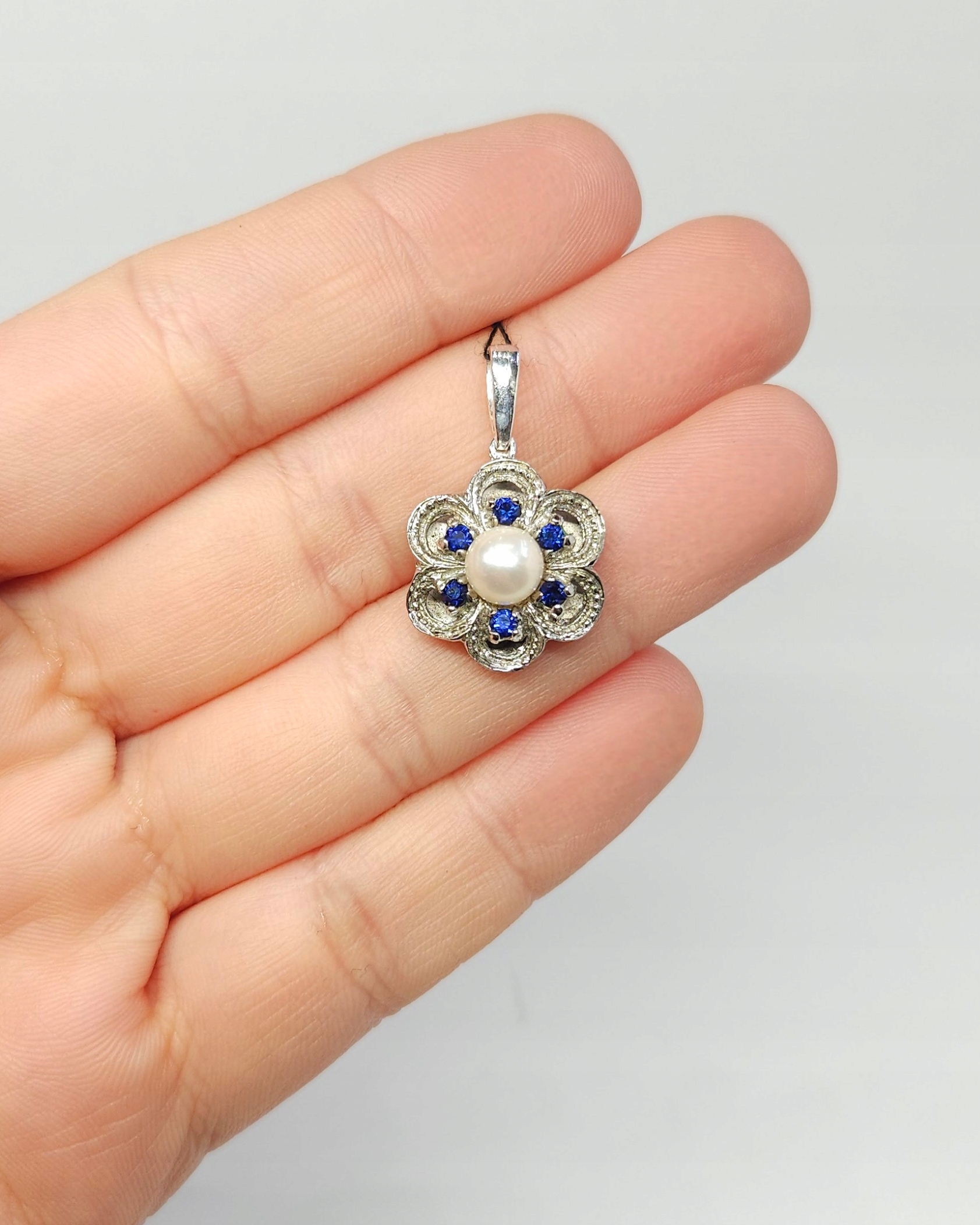 Серебряный кулон с жемчужиной племенных камней, серебряная розетка 0,835
