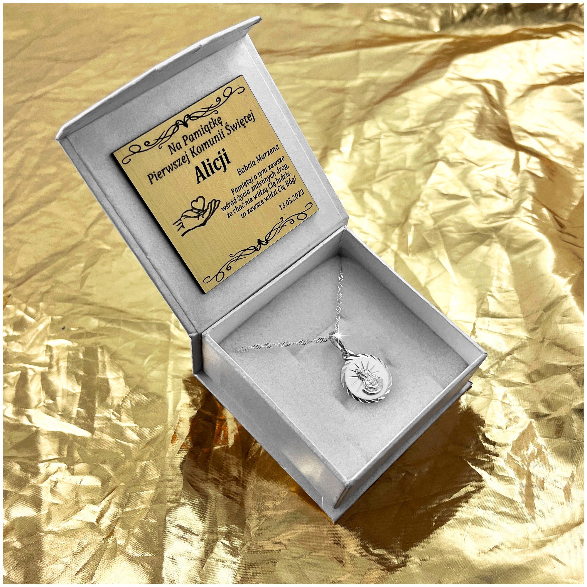 СЕРЕБРЯНАЯ ЦЕПЬ С МЕДАЛИТОЙ PR. 925 СУВЕНИРОВ ПЕРВОГО СВЯТОГО ПРИЧАСТИЯ + БЕСПЛАТНЫЕ ПОДАРКИ