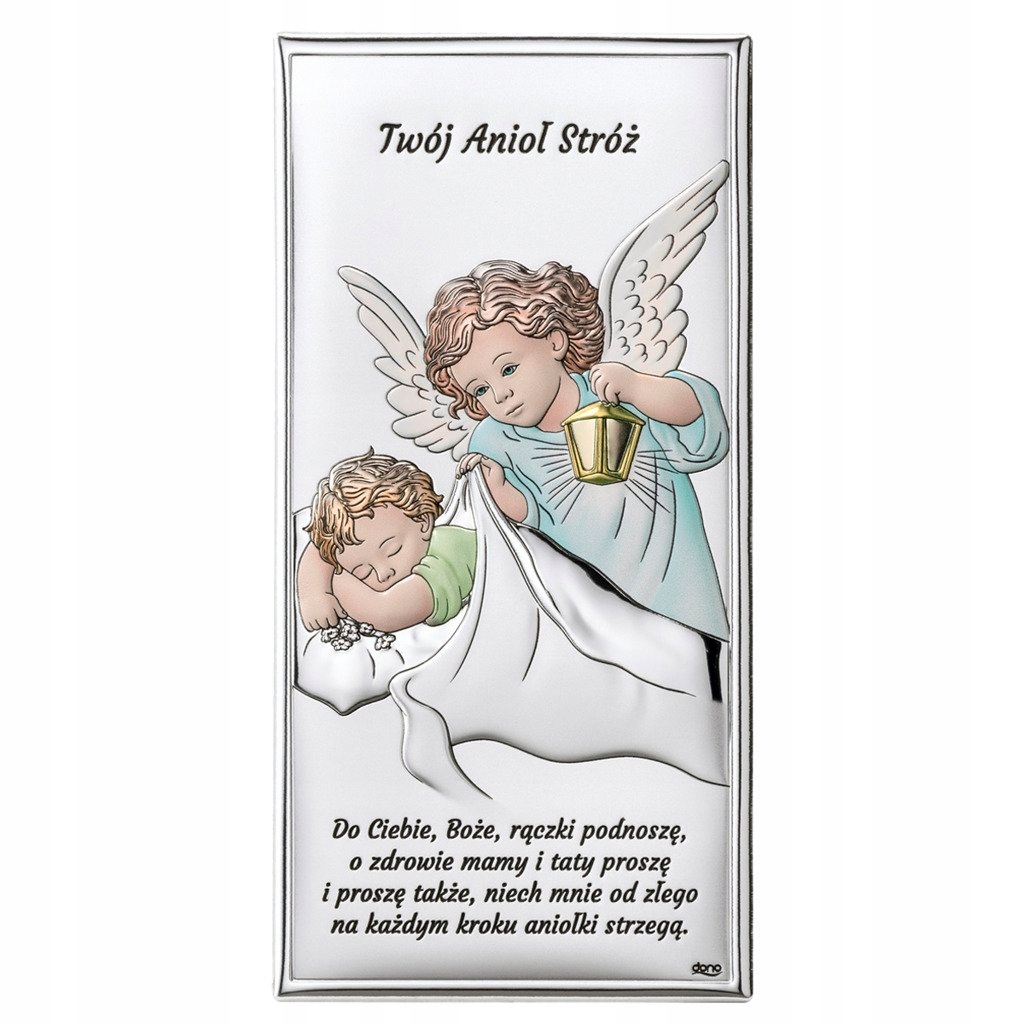 Серебряная картина с изображением ангела с фонарями , наблюдающим за ребенком, является идеальным подарком по случаю крещения. В передней части картины надпись «Ваш ангел -опекун» и текст молитвы был фабрика -обезболивана: «Для вас, Боже, я поднимаю свои ручки, для здоровья моей матери и папы, пожалуйста, отпустите меня из плохого на каждом шаге гвардии ангелов ...».