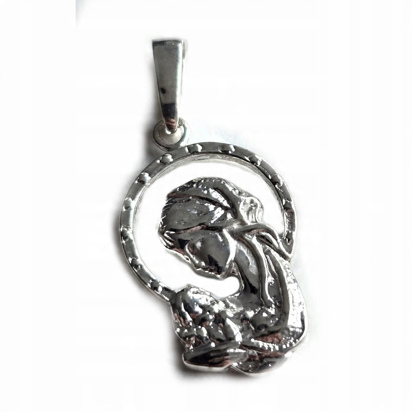 Срібний медальйон - Діва Марія з немовлям і німб - срібний