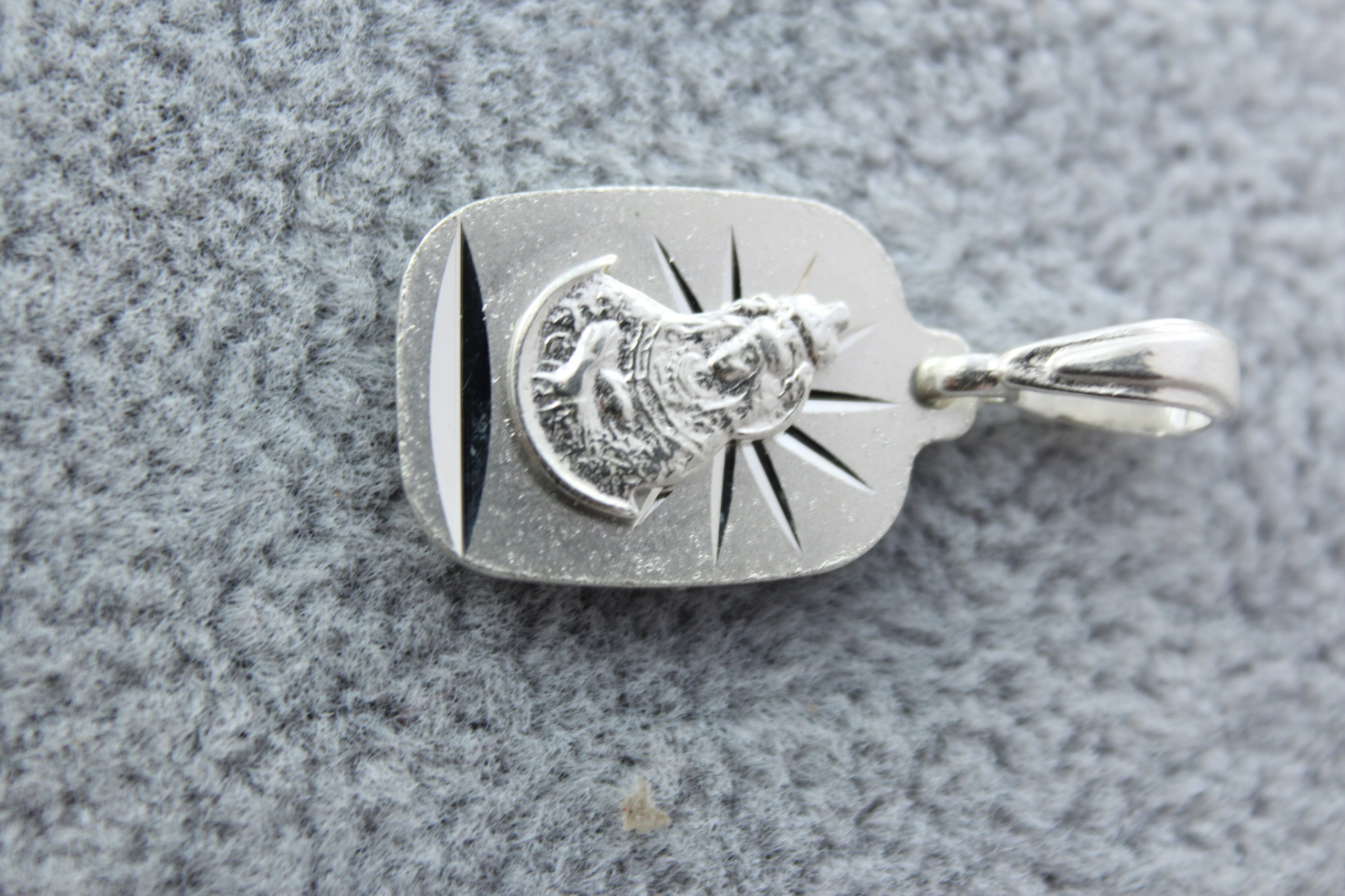 Красивый серебряный медальон, украшенный бриллиантами, Богоматерь Утренних врат