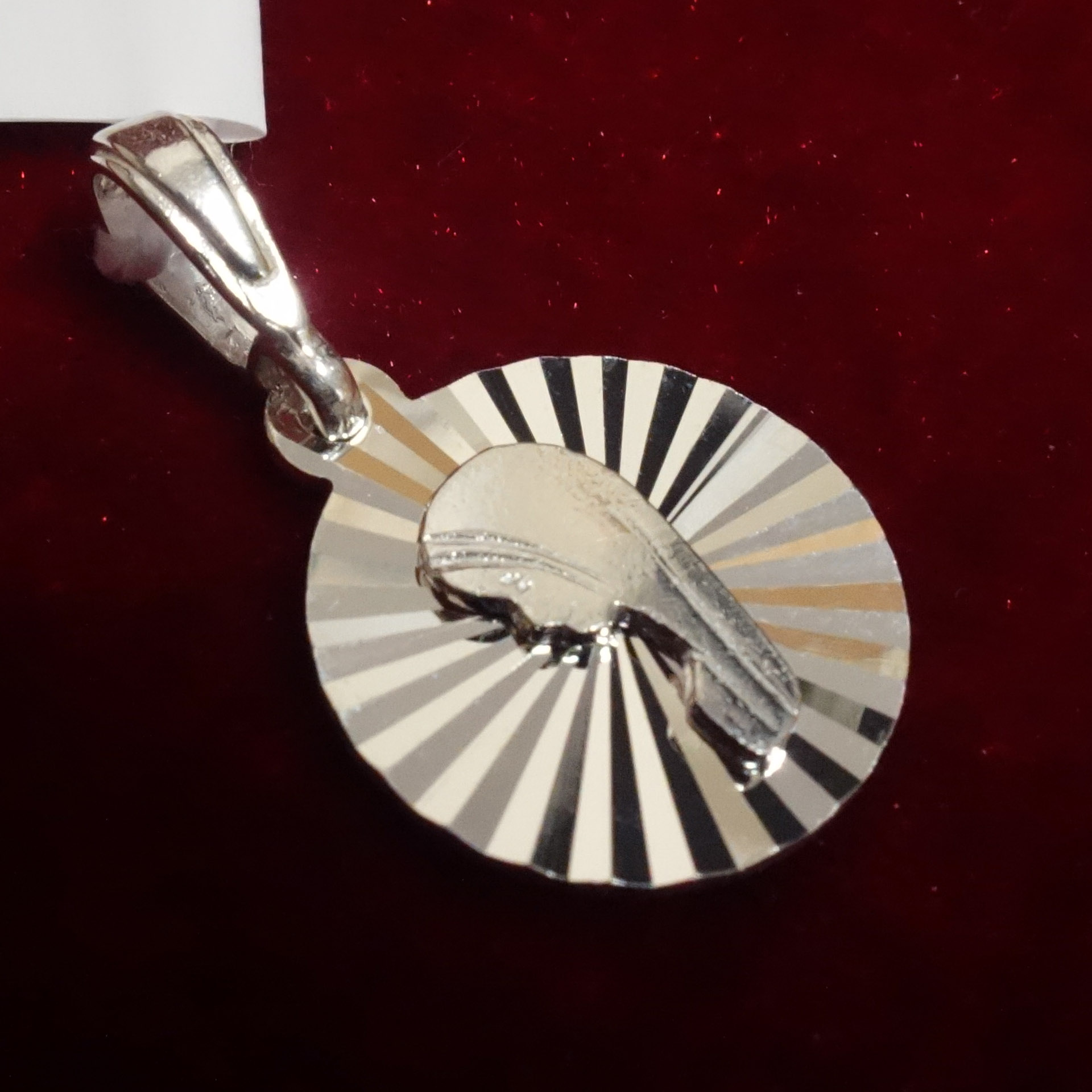 Медальон односторонний, круглой формы. На нем представлен образ Пресвятой Богородицы в лучезарном узоре. Этот медальон тонкий и изящный. Благодаря большому и прочному кулону его можно повесить на довольно толстую цепочку. Идеально подходит как для девочек, так и для взрослых. Идеально подходит для подарка. Медальон 100% серебро, прочный, не меняется при ношении.