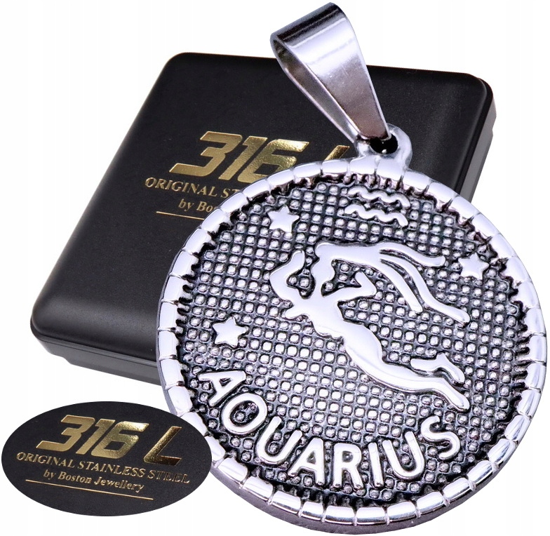 СРІБНИЙ МЕДАЛЬЙОН МЕДАЛЬЙОН ЗНАК ЗОДІАКУ ВОДОЛІЙ 316L