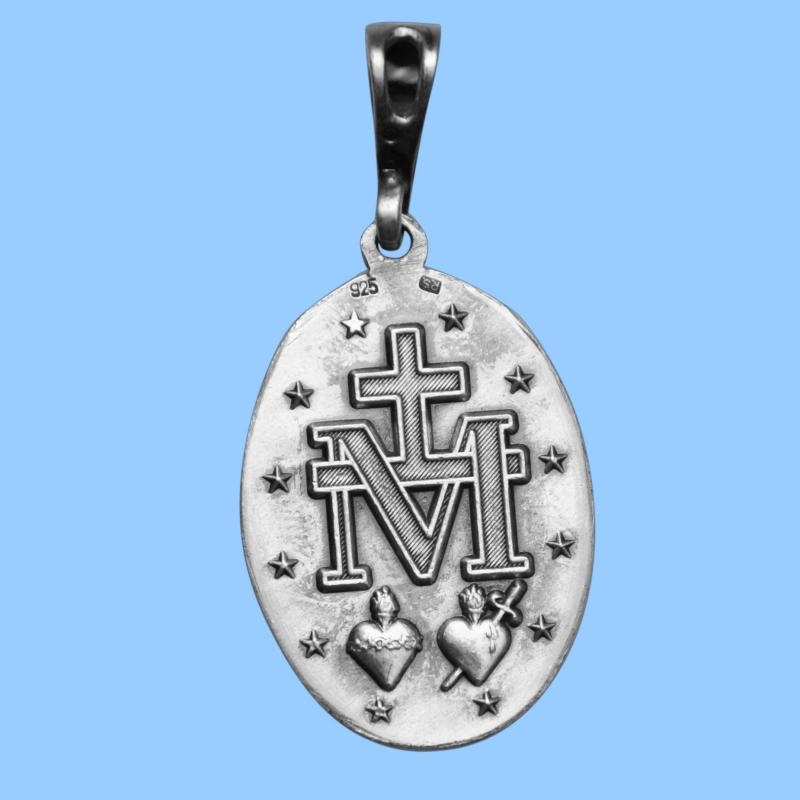 Большая медаль Непорочной - Чудотворная медаль из серебра 925 пробы - ОКИСЛЕННАЯ