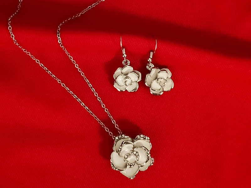 Серебряный набор женских украшений для свадебных серебряных белых роз