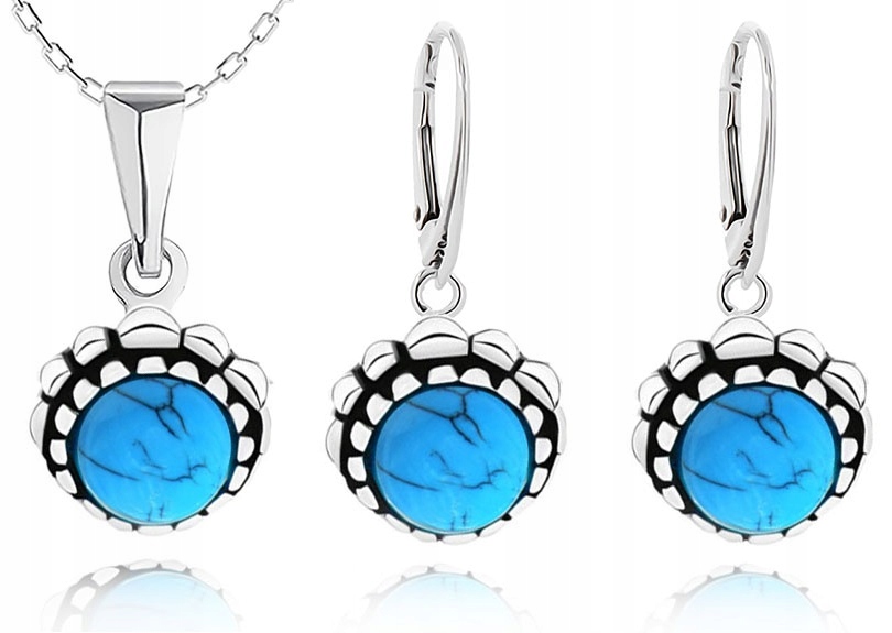 Предмет предложения - красивый, нежный комплект серебряных украшений с бирюзой -
