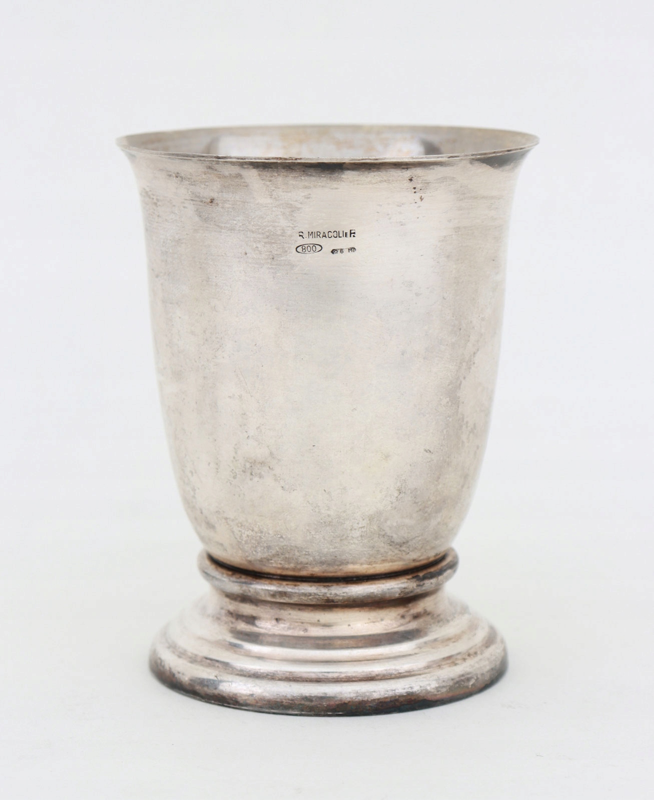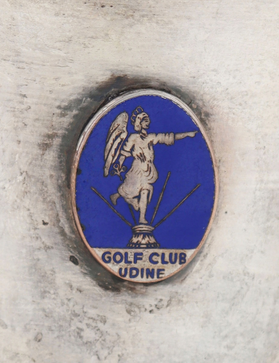 Кубокиз серебра 800 пробы. На каминной полке эмалированный значок Golf Club Udine.