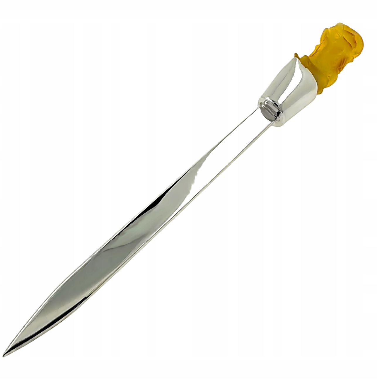Серебряный нож для букв с Балтийским янтарным. Красивая серебряная роза 925