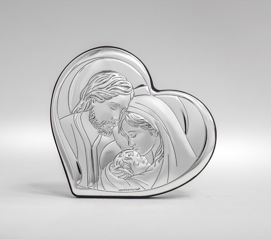 Серебряная картина с изображением Святого Семейства с Младенцем.