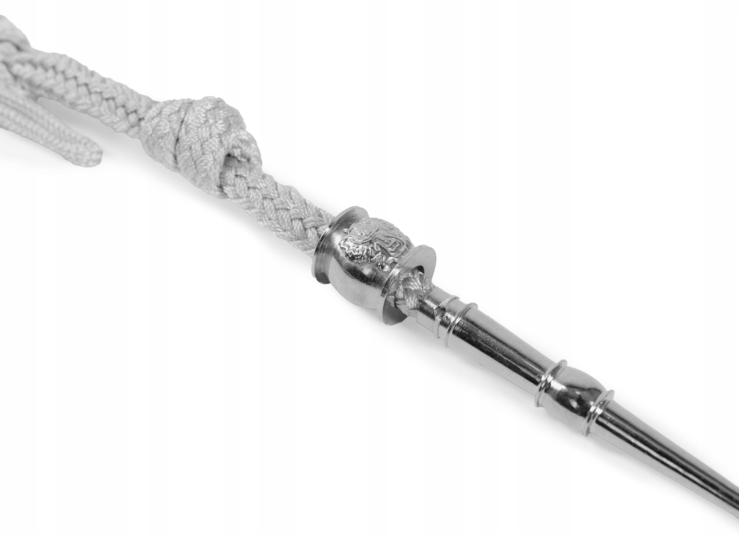 Элегантный серебряный гала-шнур, предназначенный для парадной формы солдат Войска Польского. Выполненная по официальным стандартам Министерства национальной обороны (выкройка 803/МОН), она является незаменимым элементом одежды для официальных церемоний, парадов, национальных праздников, перекличек и парадов. Веревка, вплетенная в декоративную тесьму, отделанная эстетичной металлической булавой, прикрепленной к плечу - подчеркивает престиж и звание пользователя.