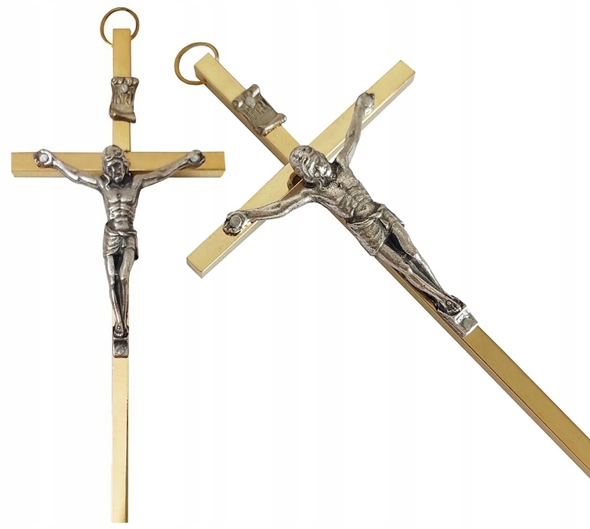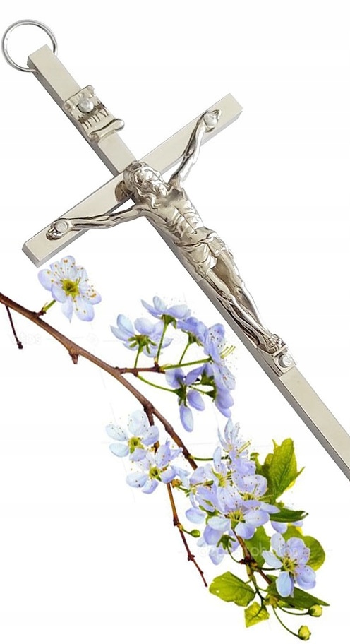 ПРЯМОЙ ПОДВЕСНОЙ СЕРЕБРЯНЫЙ МЕТАЛЛИЧЕСКИЙ КРЕСТ 13 СМ - ПОЛЬСКИЙ ИЗДЕЛИЕ