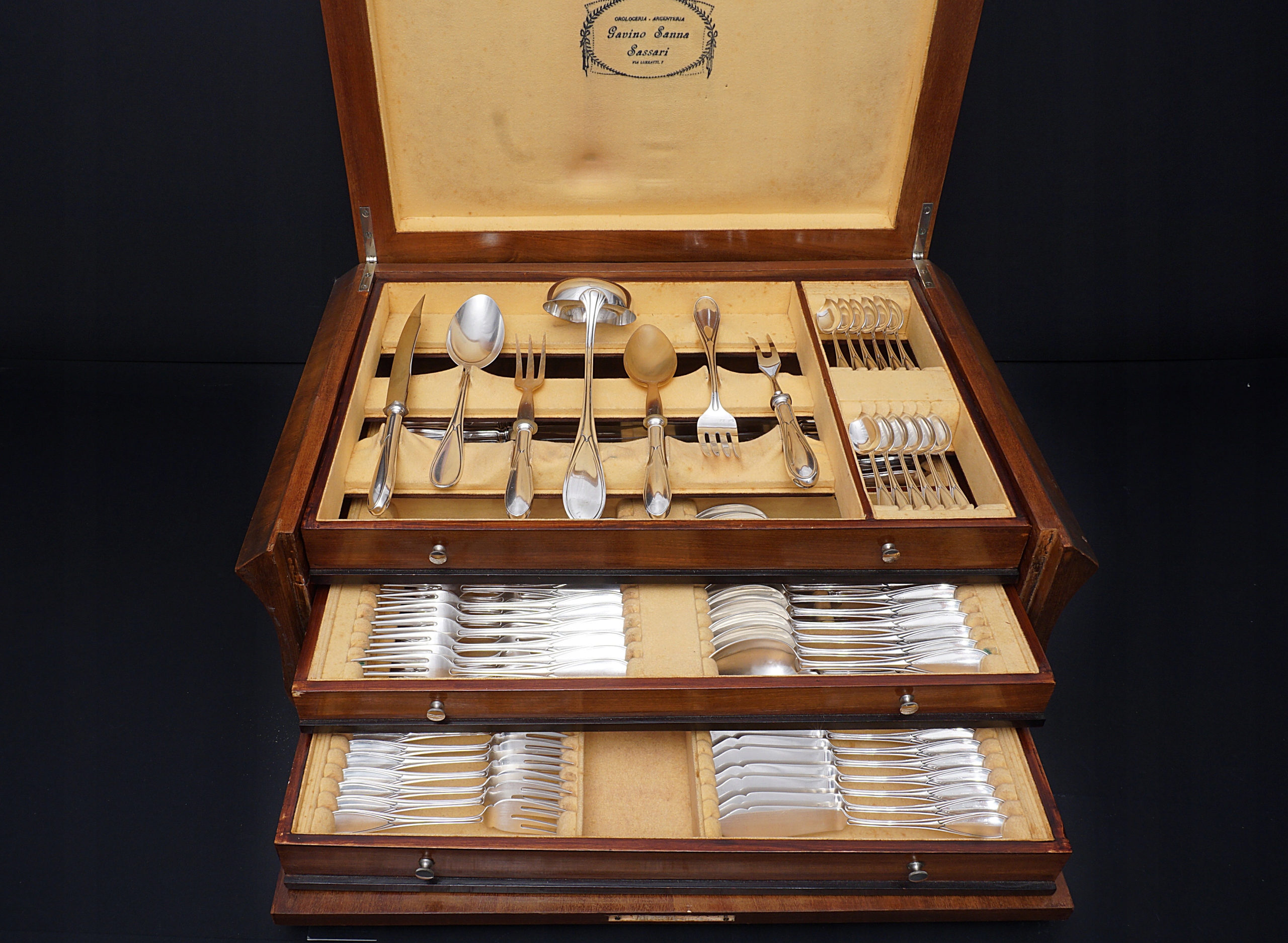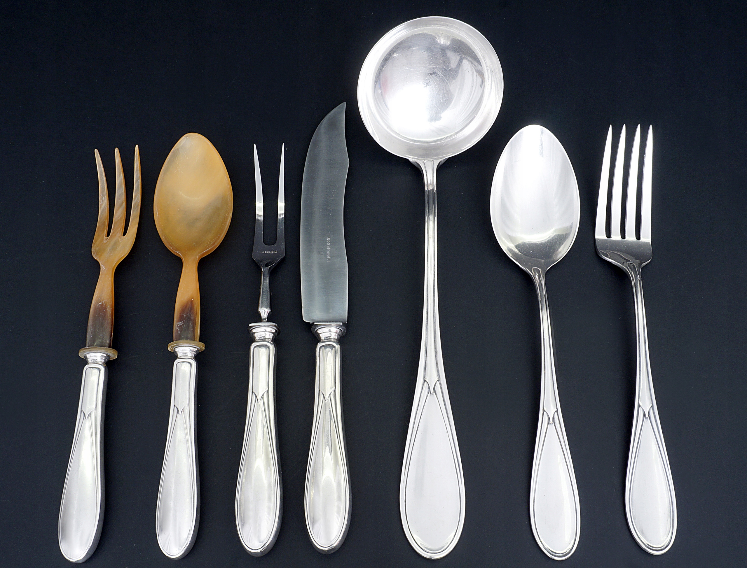 Серебряные столовые приборы для 12 человек .......... 103 Часть .......... 6,54 кг.