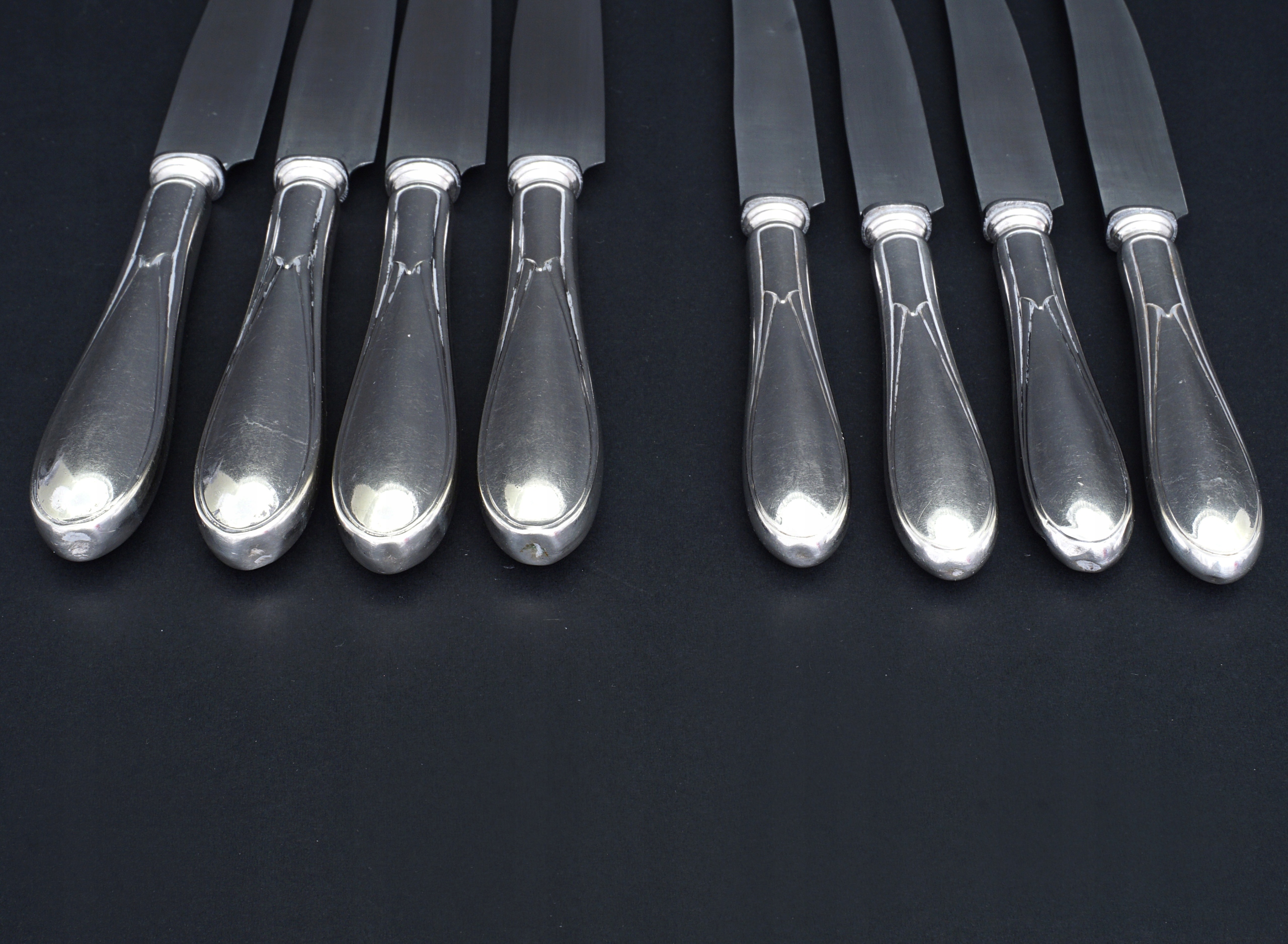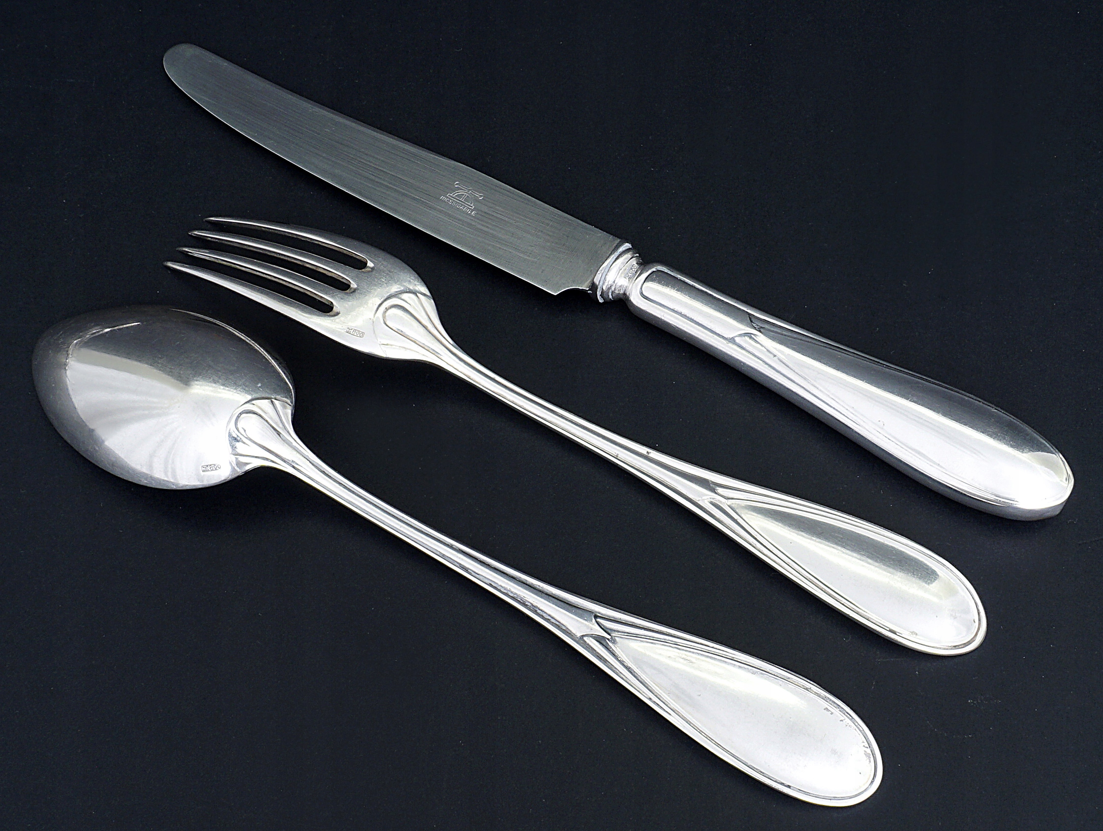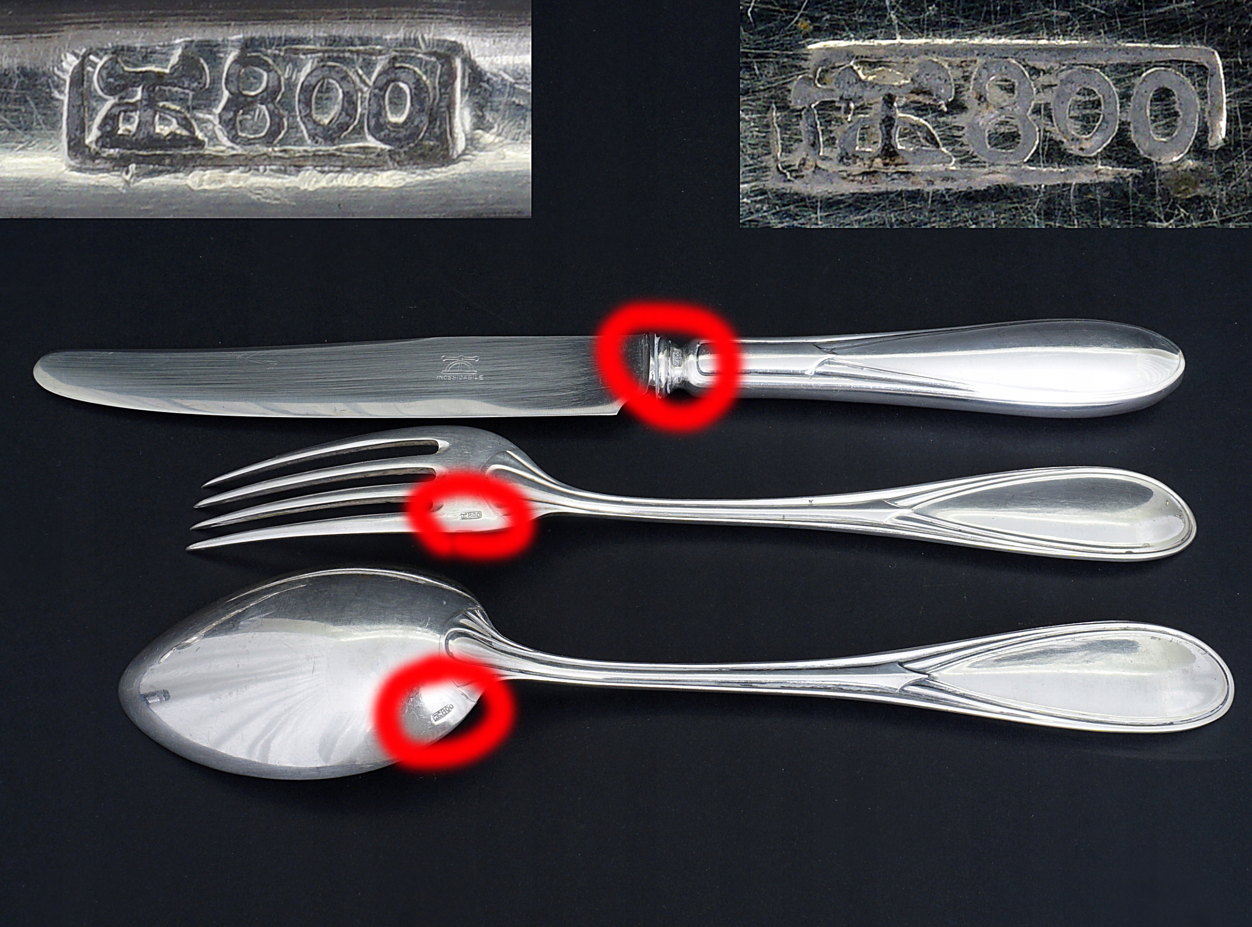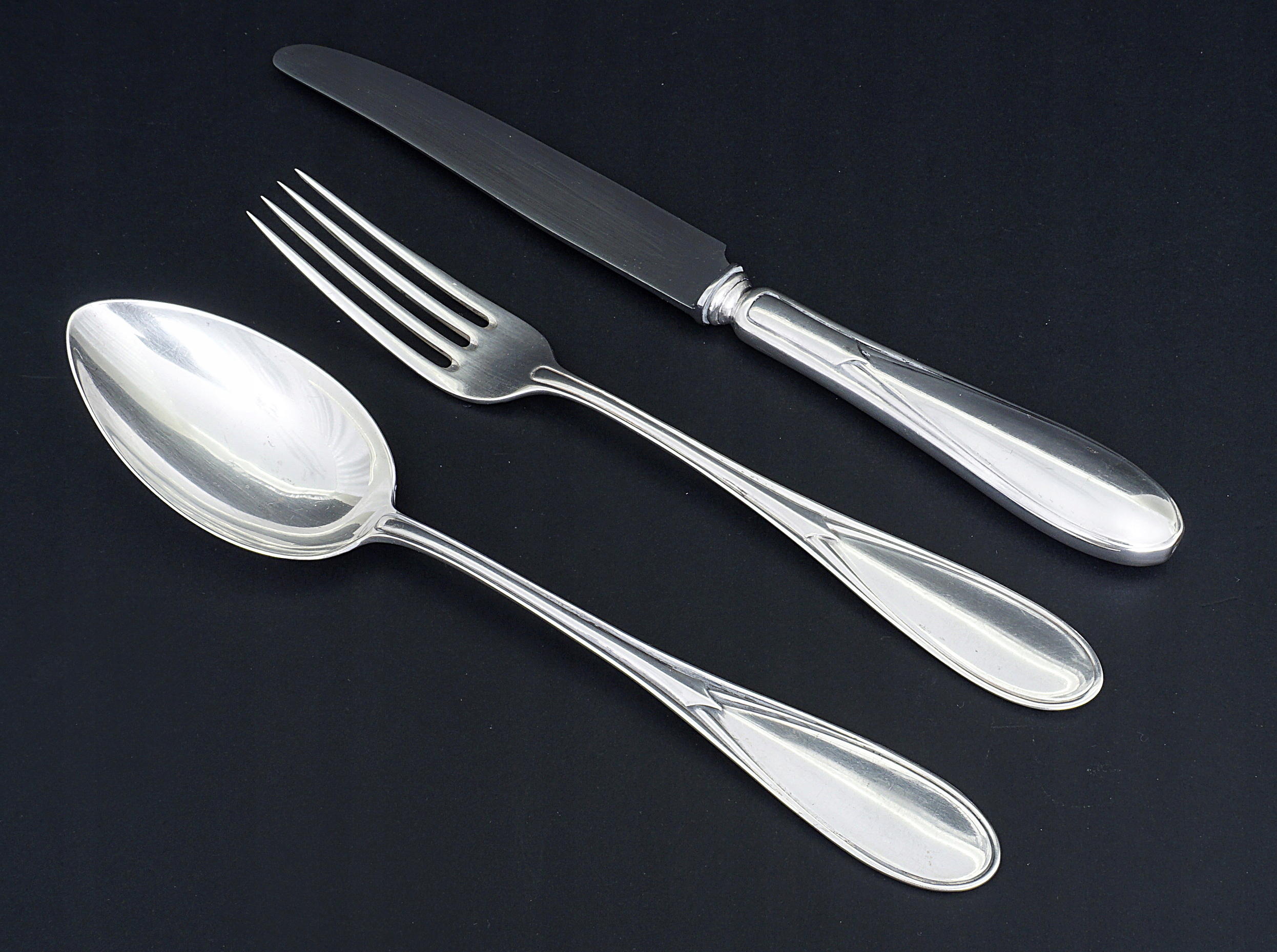 12 -Отправленный набор столовых приборов из 800 образцов серебра.