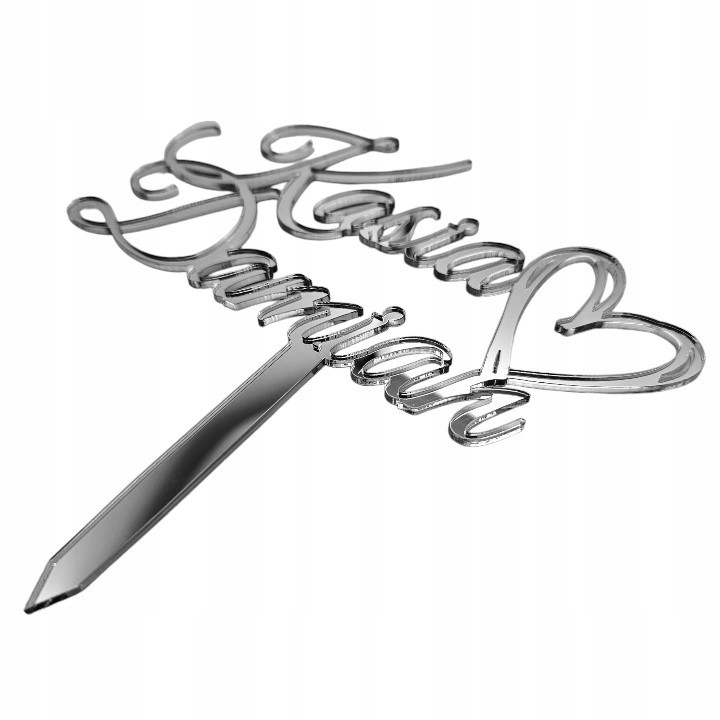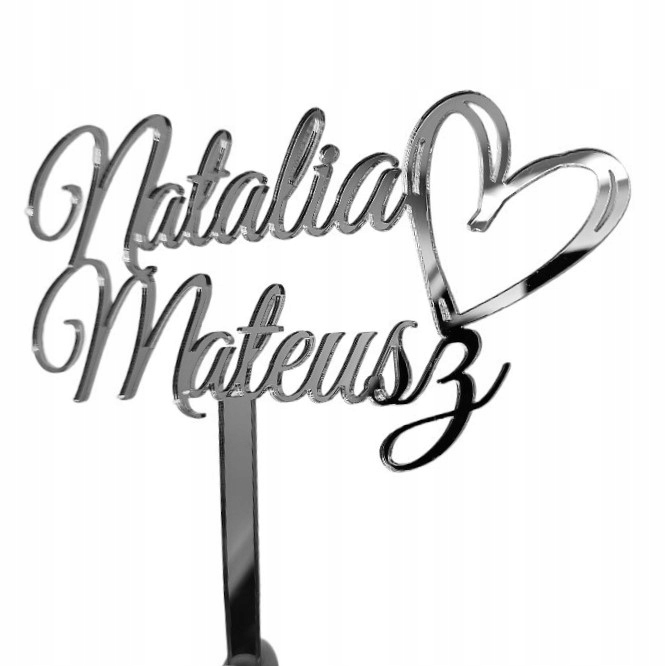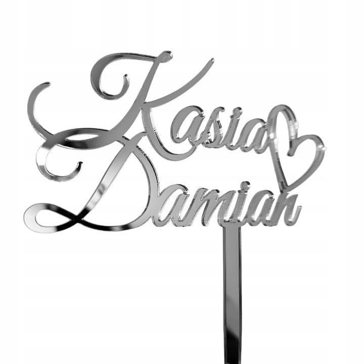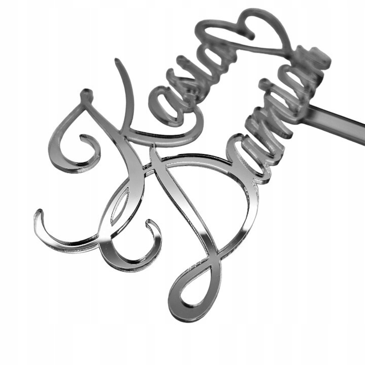 Серебряный топпер для торта с названиями жениха и невесты - Серебряное зеркало с плекси