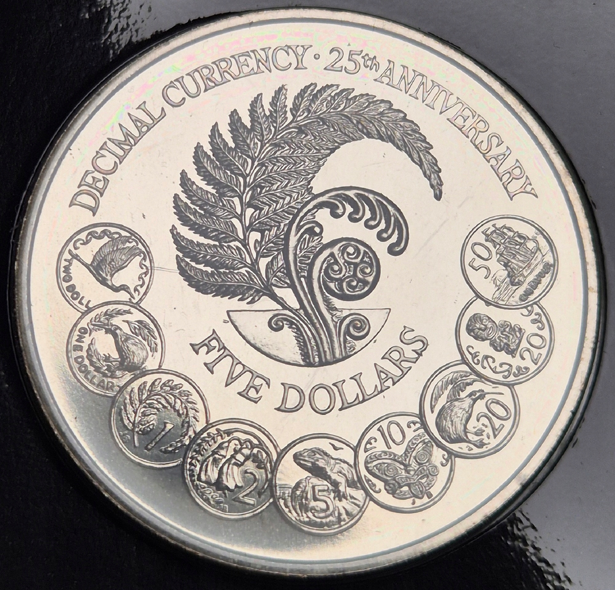 Серебряная годовщина Новой Зеландии 1992 года, 5 долларов США
