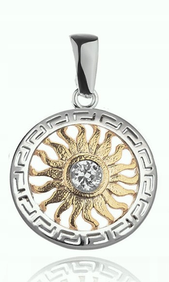 Серебряное золото, солнечное кулон с цирконом. 925! 24K