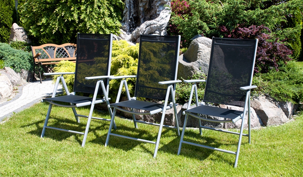 СРІБНО-ЧОРНИЙ СКЛАДНИЙ алюмінієвий садовий стілець.