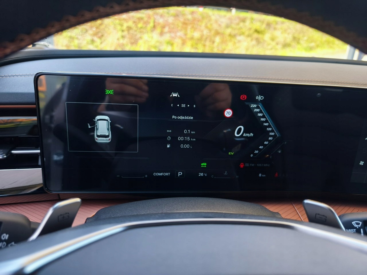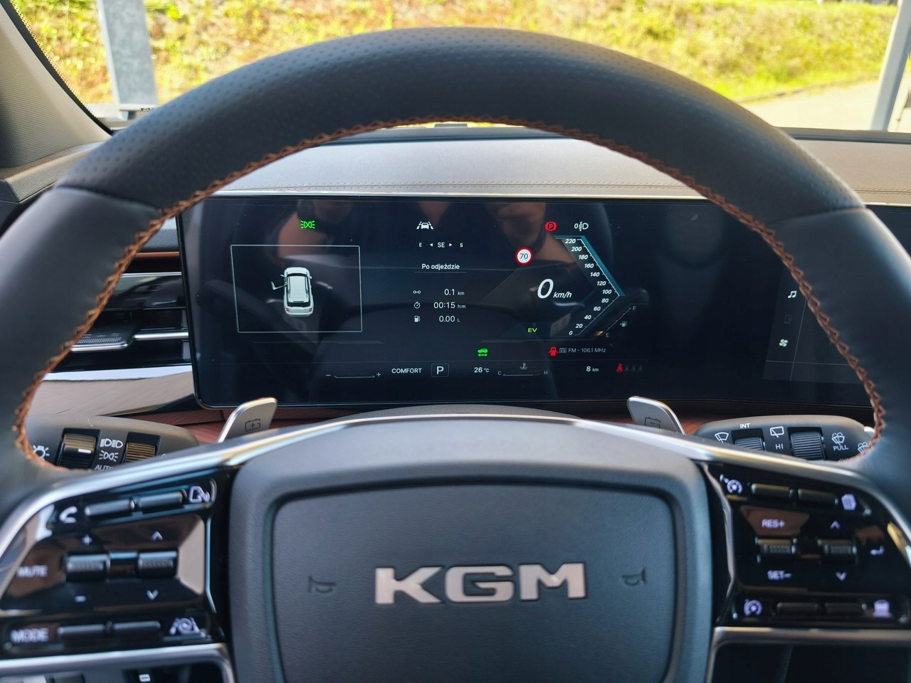 В KGM Torres Hybrid используется полная гибридная система. Dual-Tech Hybrid – это современная последовательно-параллельная система с двумя электродвигателями (тяговым и генераторным). Это означает, что автомобиль может работать в различных режимах: чисто электрическом (режим EV), последовательном гибридном (двигатель внутреннего сгорания приводит в действие генератор, который заряжает аккумулятор) или параллельном гибридном (двигатель внутреннего сгорания непосредственно поддерживает привод колес). В городских условиях автомобиль до 94% времени ездит в электрическом режиме — бензиновый двигатель часто остается выключенным, а привод обеспечивает мощный электродвигатель. Лишь на повышенных оборотах или при нажатии педали акселератора внезапно блок сгорания запускается и плавно начинает работать. Переходы между электроприводом и приводом внутреннего сгорания очень плавные, включение бензинового двигателя незаметно и происходит без рывков. Благодаря этим характеристикам Torres Hybrid предлагает ощущения, аналогичные ощущениям от электромобиля. Средний расход топлива в городском цикле составляет ок. 6.0л/100км.