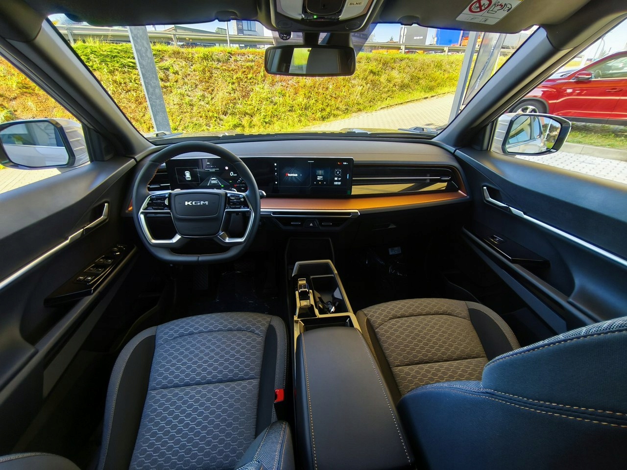 В KGM Torres Hybrid используется полная гибридная система. Dual-Tech Hybrid – это современная последовательно-параллельная система с двумя электродвигателями (тяговым и генераторным). Это означает, что автомобиль может работать в различных режимах: чисто электрическом (режим EV), последовательном гибридном (двигатель внутреннего сгорания приводит в действие генератор, который заряжает аккумулятор) или параллельном гибридном (двигатель внутреннего сгорания непосредственно поддерживает привод колес). В городских условиях автомобиль до 94% времени ездит в электрическом режиме — бензиновый двигатель часто остается выключенным, а привод обеспечивает мощный электродвигатель. Лишь на повышенных оборотах или при нажатии педали акселератора внезапно блок сгорания запускается и плавно начинает работать. Переходы между электроприводом и приводом внутреннего сгорания очень плавные, включение бензинового двигателя незаметно и происходит без рывков. Благодаря этим характеристикам Torres Hybrid предлагает ощущения, аналогичные ощущениям от электромобиля. Средний расход топлива в городском цикле составляет ок. 6.0л/100км.